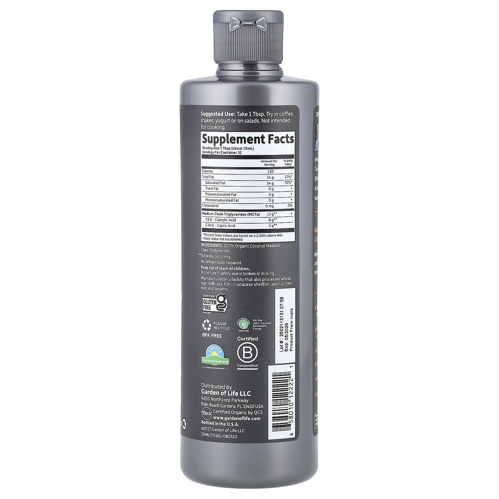 - 13 г MCT (включая каприловую и каприновую кислоты) в одной порции