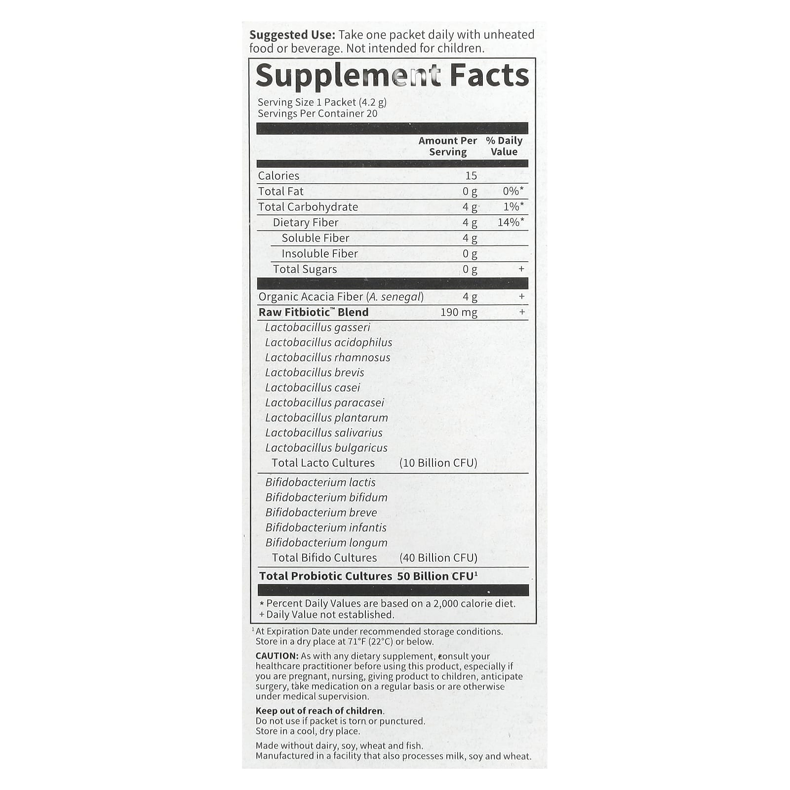 | Смесь необработанных пробиотиков Fitbiotic | 190 мг | + |
