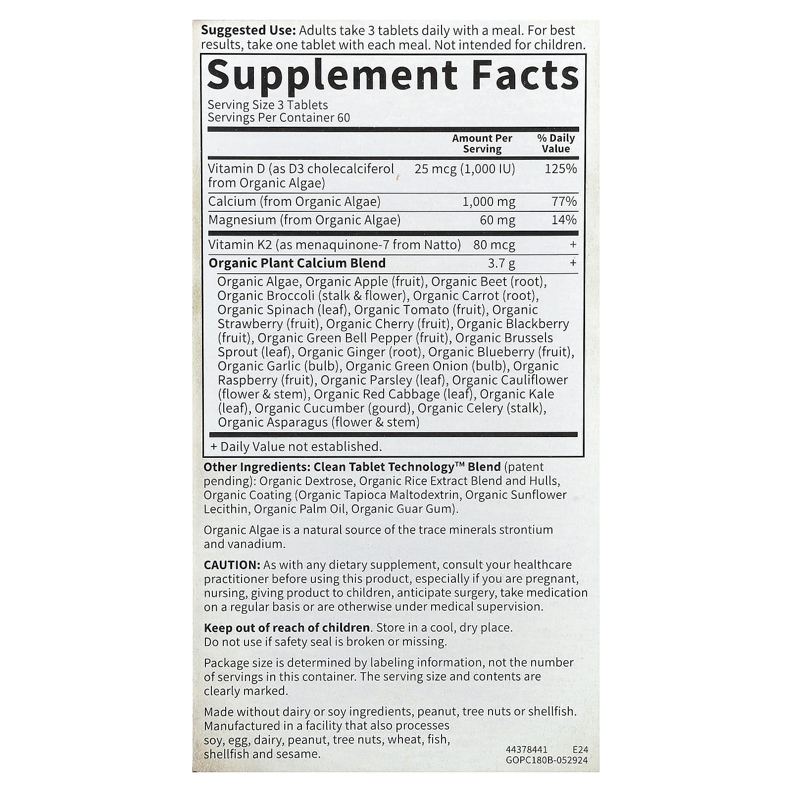 Кальций растительного происхождения, витамины D3 и K2 в виде MK-7, а также более чем 20 органических продуктов, выращенных на семейных фермах