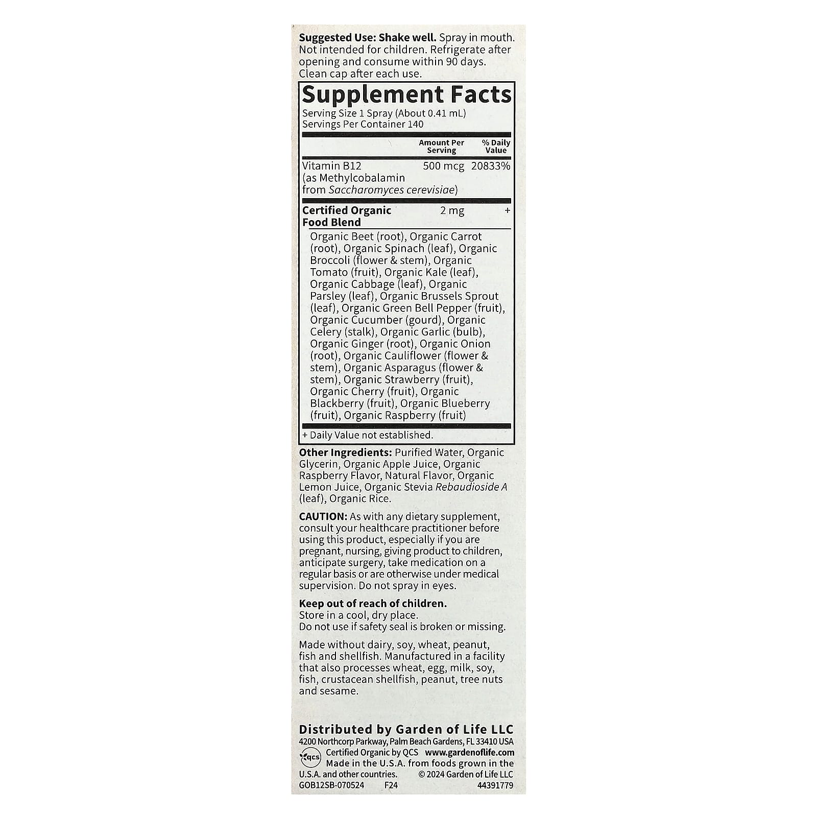 Формула с витамином B12 из цельных продуктов имеет сертифицированный органический состав и гарантированно не содержит ГМО.