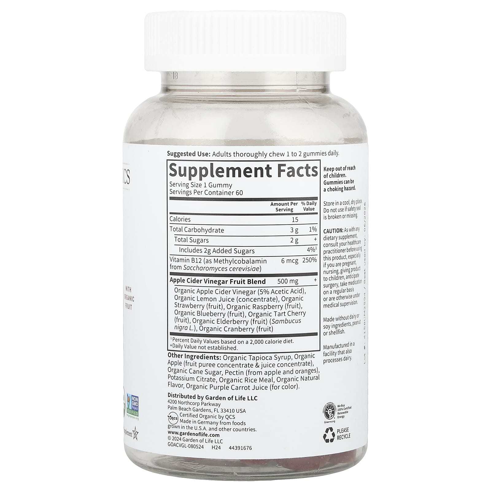 «Эти органические, не содержащие ГМО и веганские жевательные конфеты - интересный способ насладиться всеми преимуществами, которые вам нравятся от органического яблочного уксуса, неочищенного и ферментированного, полученного от матери, а также цельного витамина B12».