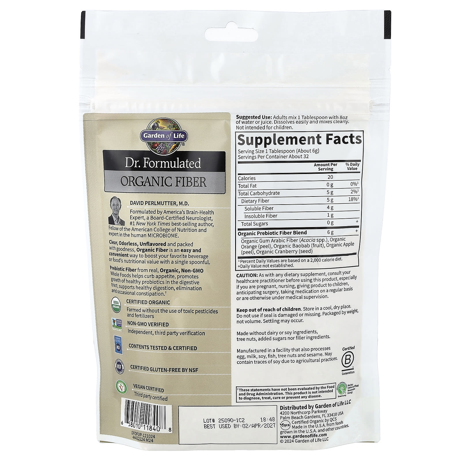 Garden of Life, Органическая клетчатка Dr. Formulated, без цвета, без вкуса, 192 г (6,8 унций)