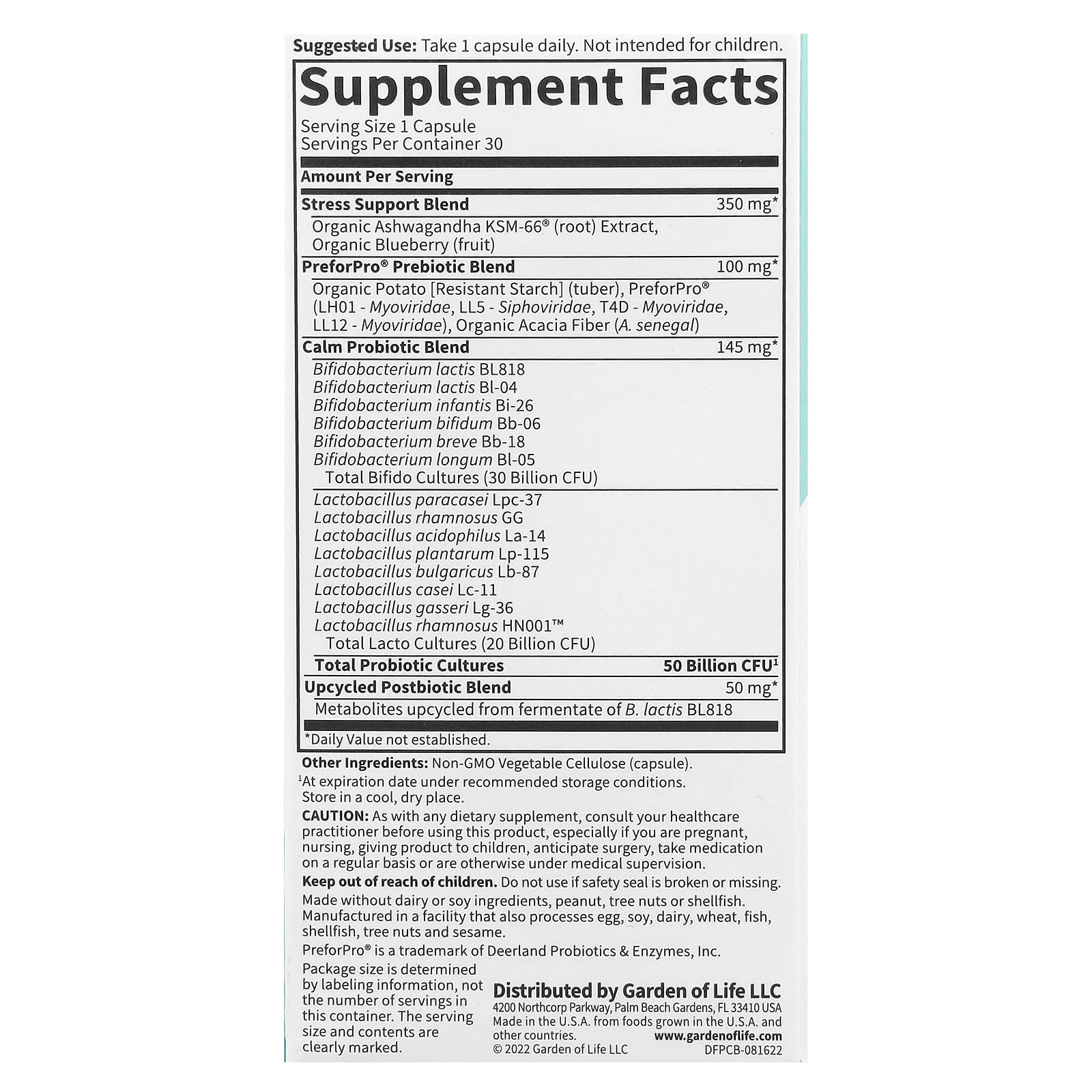 | Успокаивающая смесь пробиотиков Бифидобактерии Lactis Bl818 Бифидобактерии лактис Bl-04 Бифидобактерии инфантис би-26 Бифидобактерии бифидум Bb-06 Бифидобактерии Бреве Bb-03 Бифидобактерии лонгум (бифидобактерии лонгум) Bl-05 Всего культур бифидо (30 млрд КОЕ) Лактобактерии параказеи Lpc-37 Лактобактерии рамнозус GG Ацидофильные лактобактерии La-14 Лактобактерии плантарум (Lactobacillus plantarum) Lp-115 Лактобактерии болгарской (Lactobacillus bulgaricus) Lb-87 Лактобактерии казеи Lc-11 Лактобактерии гассери LG-36 Лактобактерии рамнозус HN001 ™ Всего лакто-культур (20 млрд КОЕ) | 145 мг | * |
