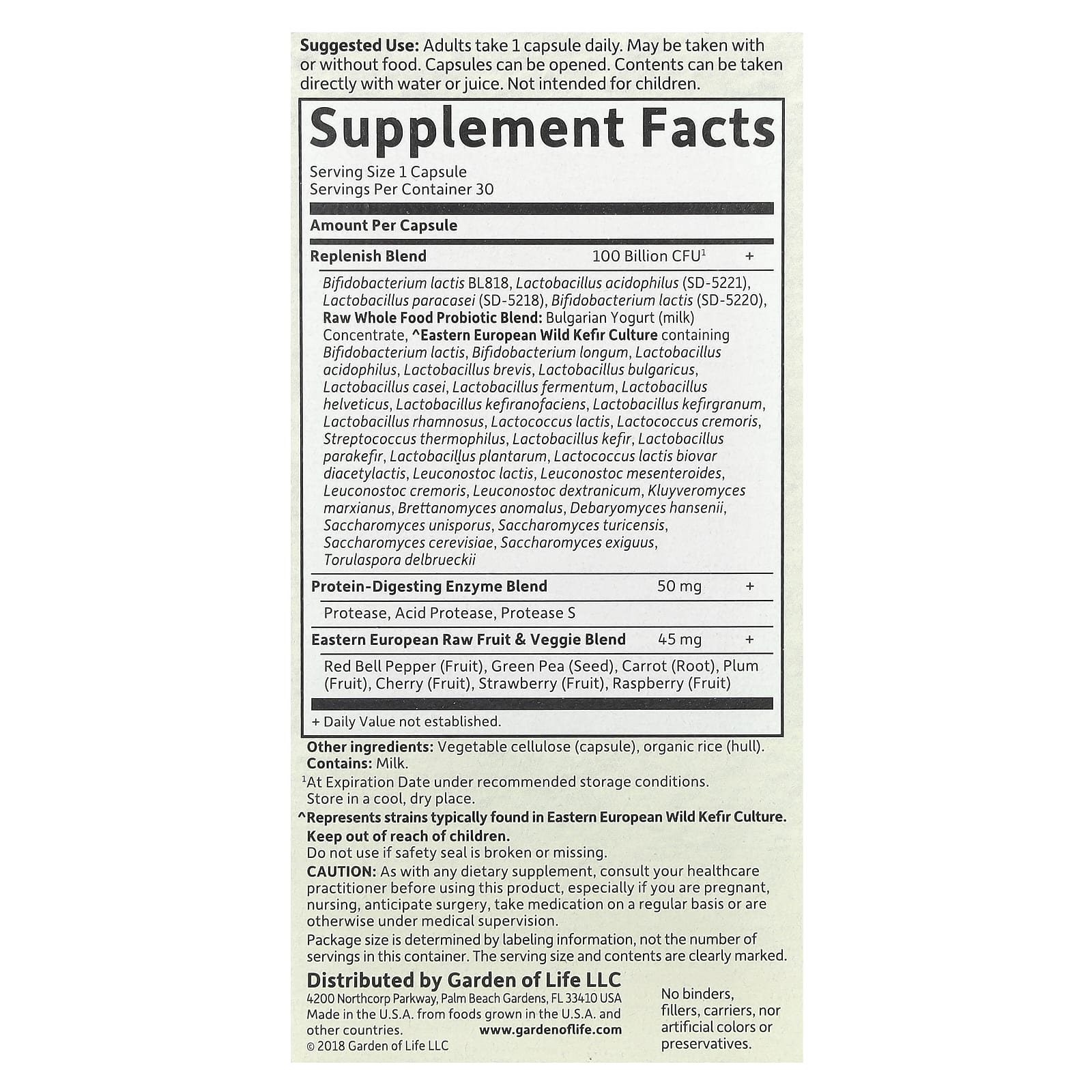 100 млрд КОЕ, обычно содержит 34 пробиотика клинически изученного вида, а также культуру дикого кефира из Восточной Европы