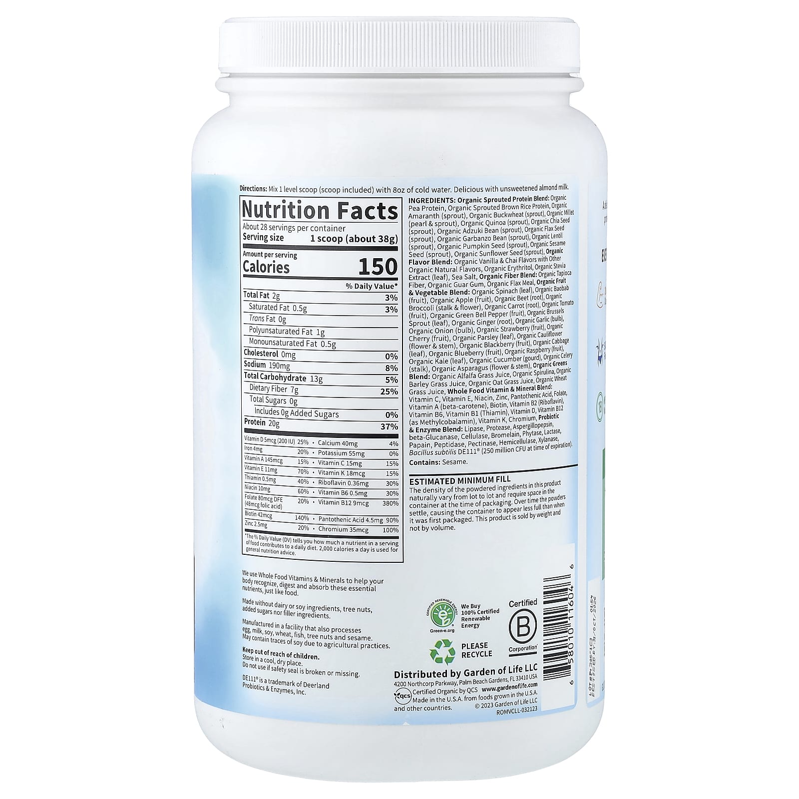 Garden of Life, RAW Organic, коктейль-заменитель еды, ваниль и чай, 1064 г (2 фунта 5,53 унции)