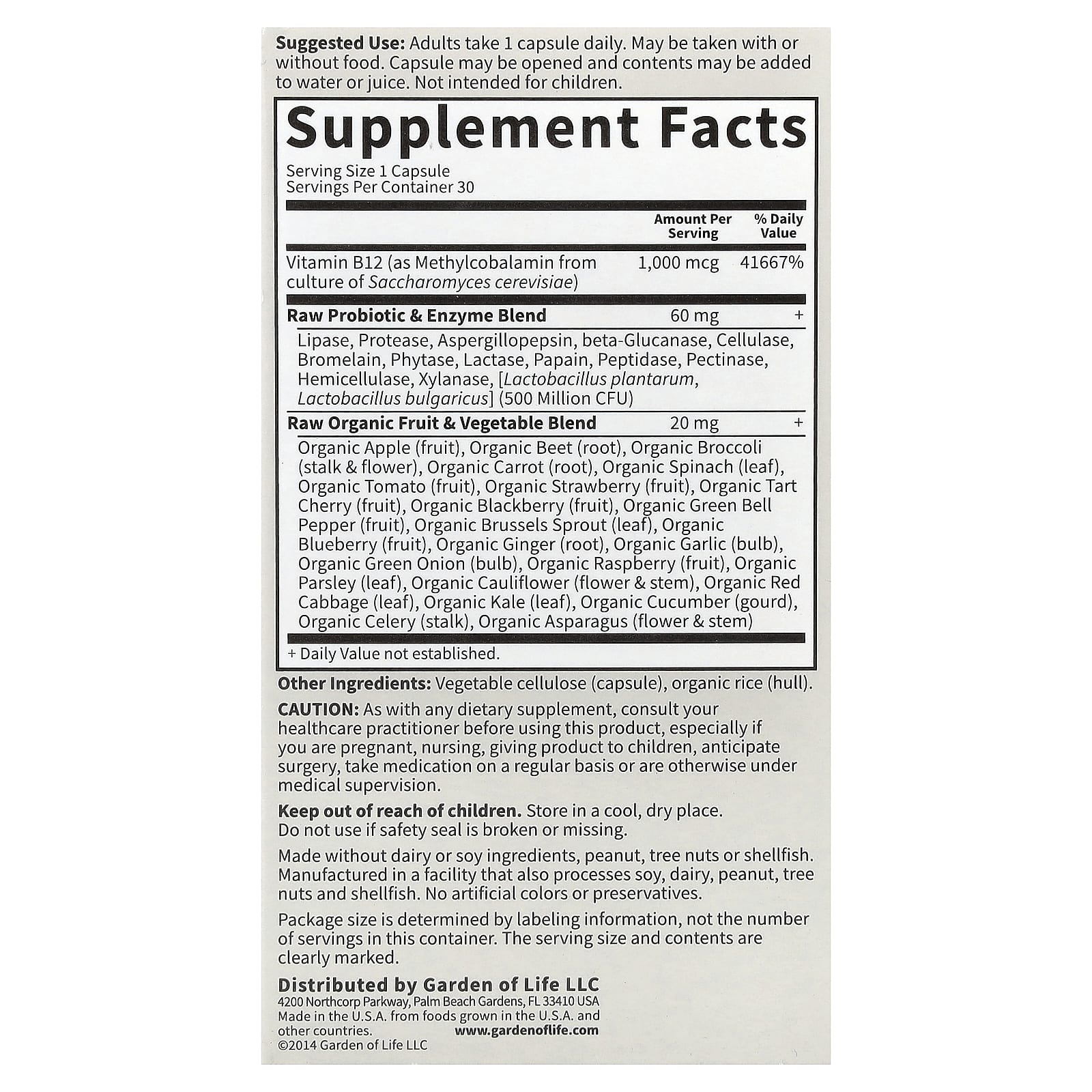 | Смесь необработанных органических фруктов и овощей Органическое яблоко (плод), органическая свекла (корнеплод), органическая брокколи (стебель и цветок), органическая морковь (корнеплод), органический шпинат (лист), органический томат (плод), органическая клубника (плод), органическая вишня (плод), органическая ежевика (плод), органический зеленый болгарский перец (плод), органическая брюссельская капуста (лист), органическая голубика (плод), органический имбирь (корень), органический чеснок (луковица), органический зеленый лук (луковица), органическая малина (плод), органическая петрушка (лист), органическая цветная капуста (цветок и стебель), органическая красная капуста (лист), органическая листовая капуста (лист), органический огурец (плод), органический сельдерей (стебель), органическая спаржа (цветок и стебель) | 20 мг | + |
