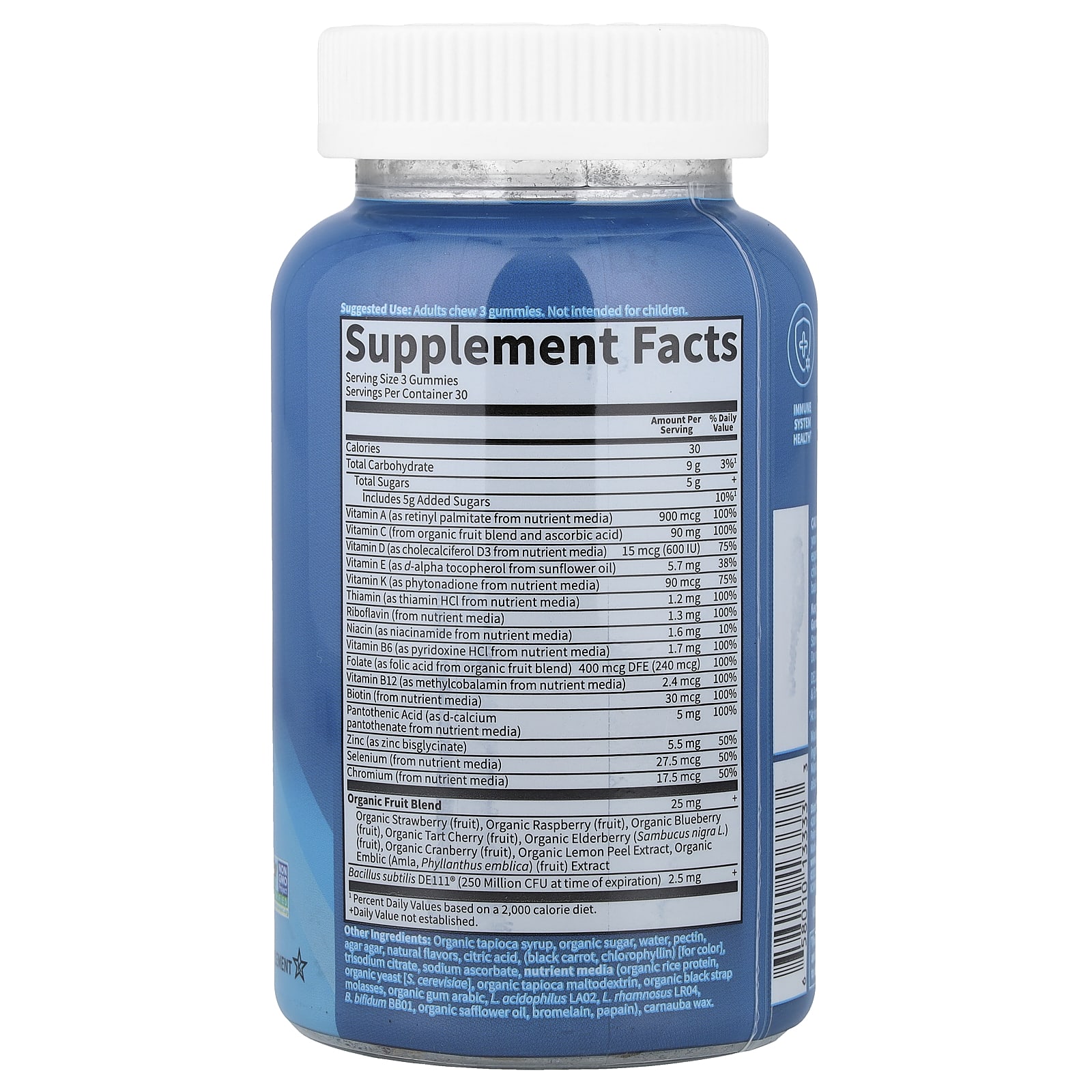 Органический тапиоковый сироп, органический сахар, Вода, пектин, агар-агар, натуральные ароматизаторы, лимонная кислота, (чёрная морковь, хлорофиллин) (краситель), цитрат тринатрия, Аскорбат натрия, питательные среды (органический рисовый белок, органические дрожжи. cerevisiae], органический мальтодекстрин из тапиоки, органическая чёрная патока, органическая аравийская камедь, л. acidophilus la02, л. rhamnosus LR04, Б. бифидум BB01, органическое сафлоровое масло, бромелайн, папаин), карнаубский воск.