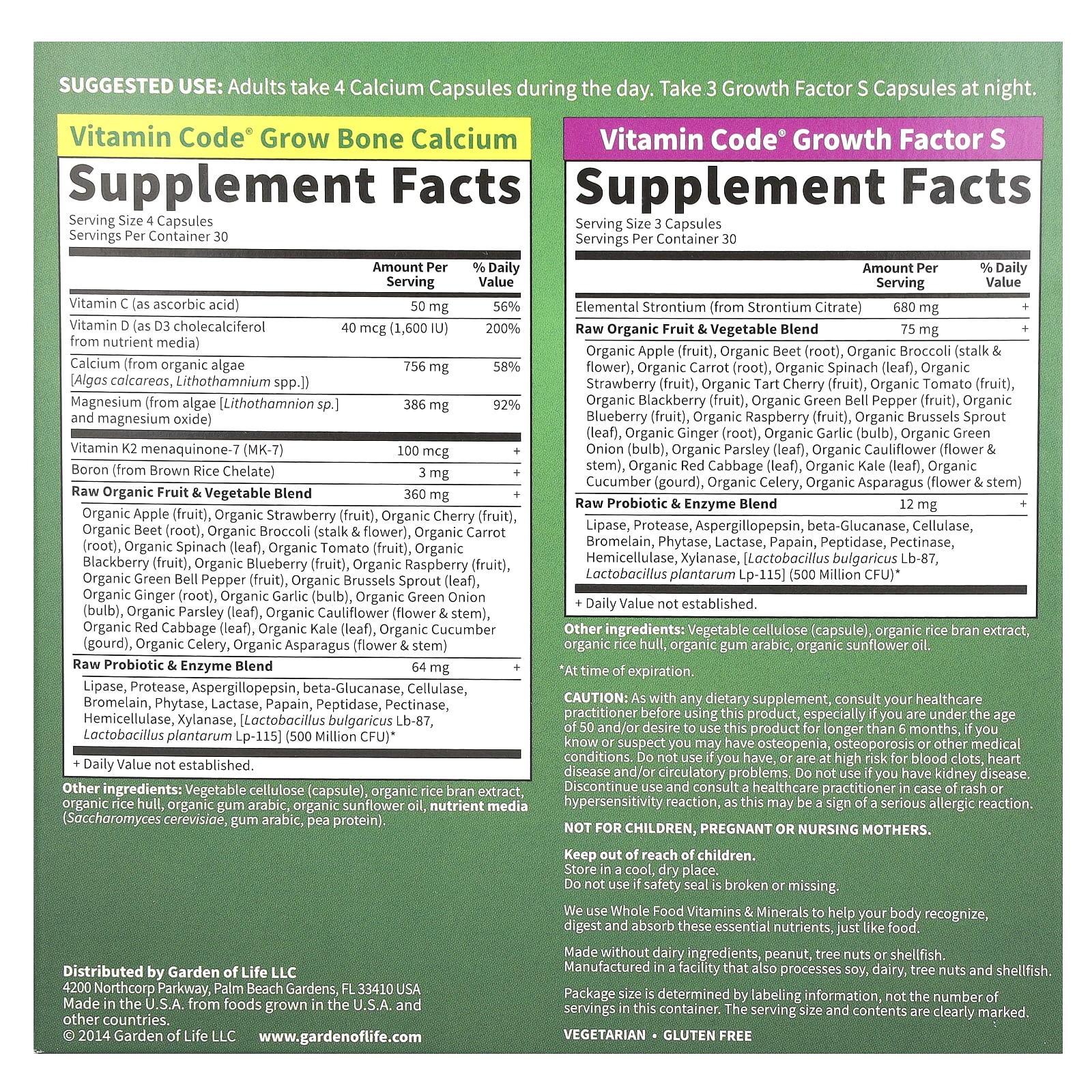 Взрослым принимать по 4 капсулы кальция в день. Принимать по 3 капсулы Growth Factor S вечером.