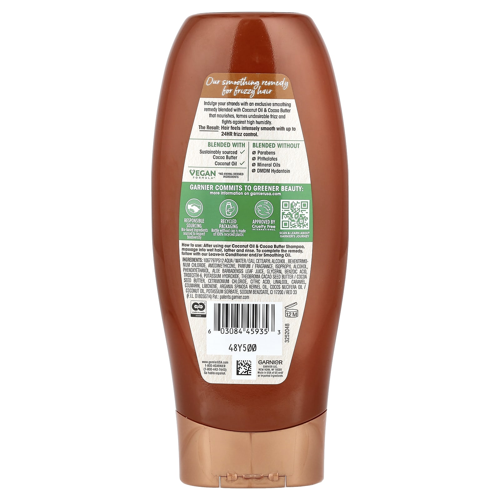 Garnier, Whole Blends, разглаживающий кондиционер, кокосовое масло и какао-масло, 370 мл (12,5 жидк. Унции)