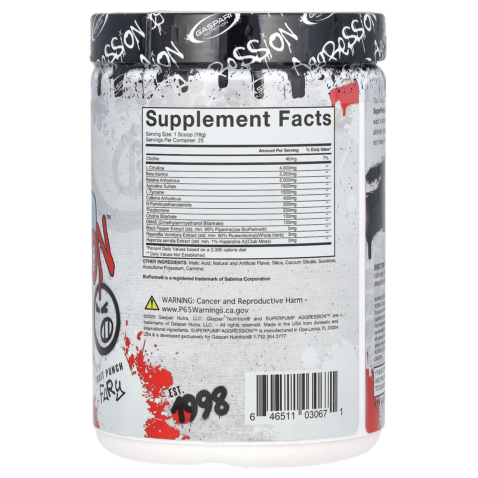 Gaspari Nutrition, SuperPump Aggression Pre-Workout, Fruit Punch Fury, 450 г