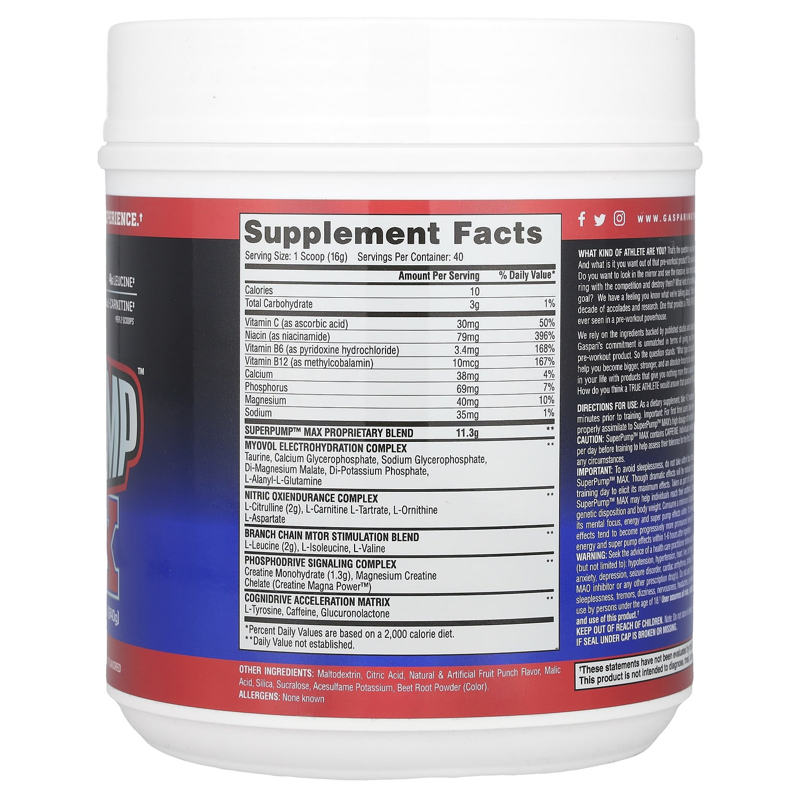 SuperPump™ MAX содержит кофеин. Лицам, чувствительным к кофеину или другим стимуляторам, следует начать с одной (1) мерной ложки в день перед тренировкой, чтобы проверить их переносимость в течение первых 2–3 дней. Ни при каких обстоятельствах не принимайте более трех (3) мерных ложек одновременно.