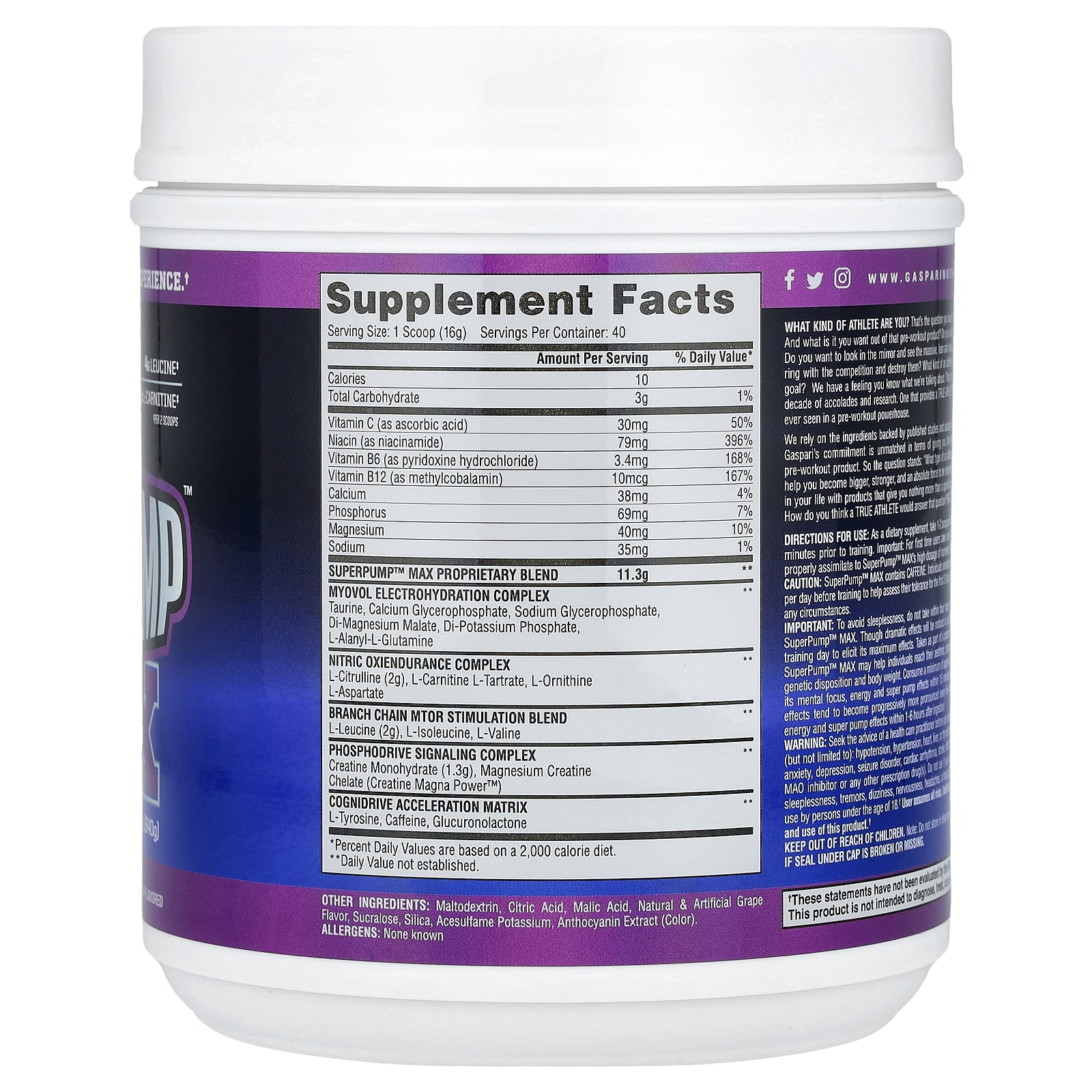SuperPump ™ MAX содержит кофеин. Людям, чувствительным к кофеину или другим стимуляторам, следует принимать по одной (1) мерной ложке в день перед тренировкой, чтобы оценить их переносимость в течение первых 2–3 дней. Не употребляйте более трех (3) мерных ложек одновременно и ни при каких обстоятельствах.