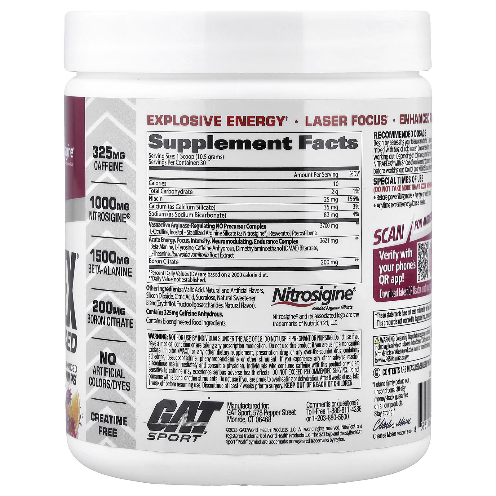 Научно подтверждено, что преимущества Nitrosigine® сохраняются до 6 часов после приема дозы. Клинически доказано, что помимо способности расширять кровеносные сосуды и повышать общую результативность, Nitrosigine® способствует улучшению умственной концентрации, что делает его всесторонним и многогранным дополнением к любой эффективной предтренировочной формуле‡.