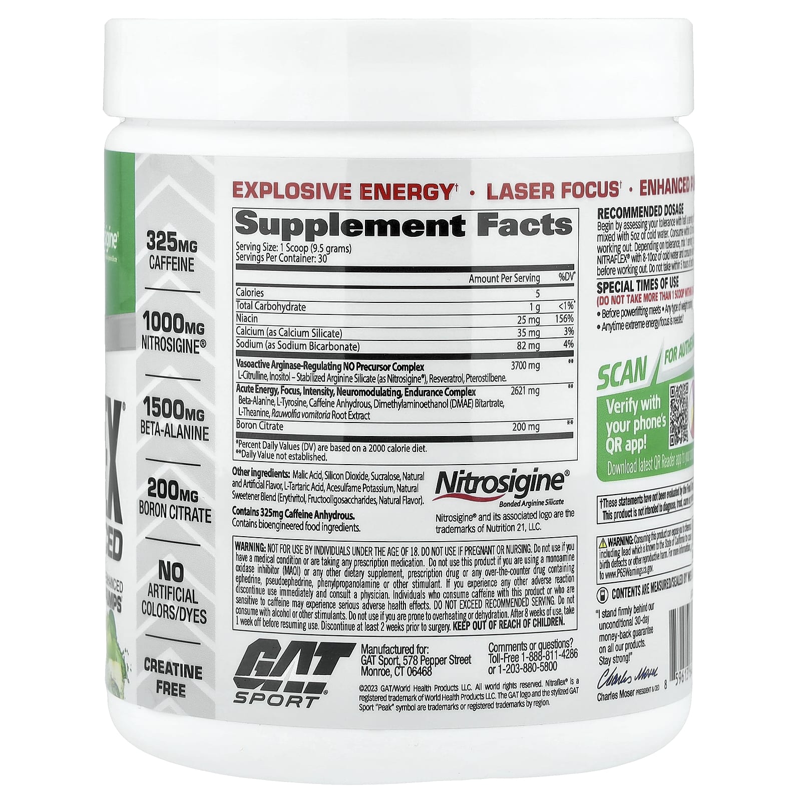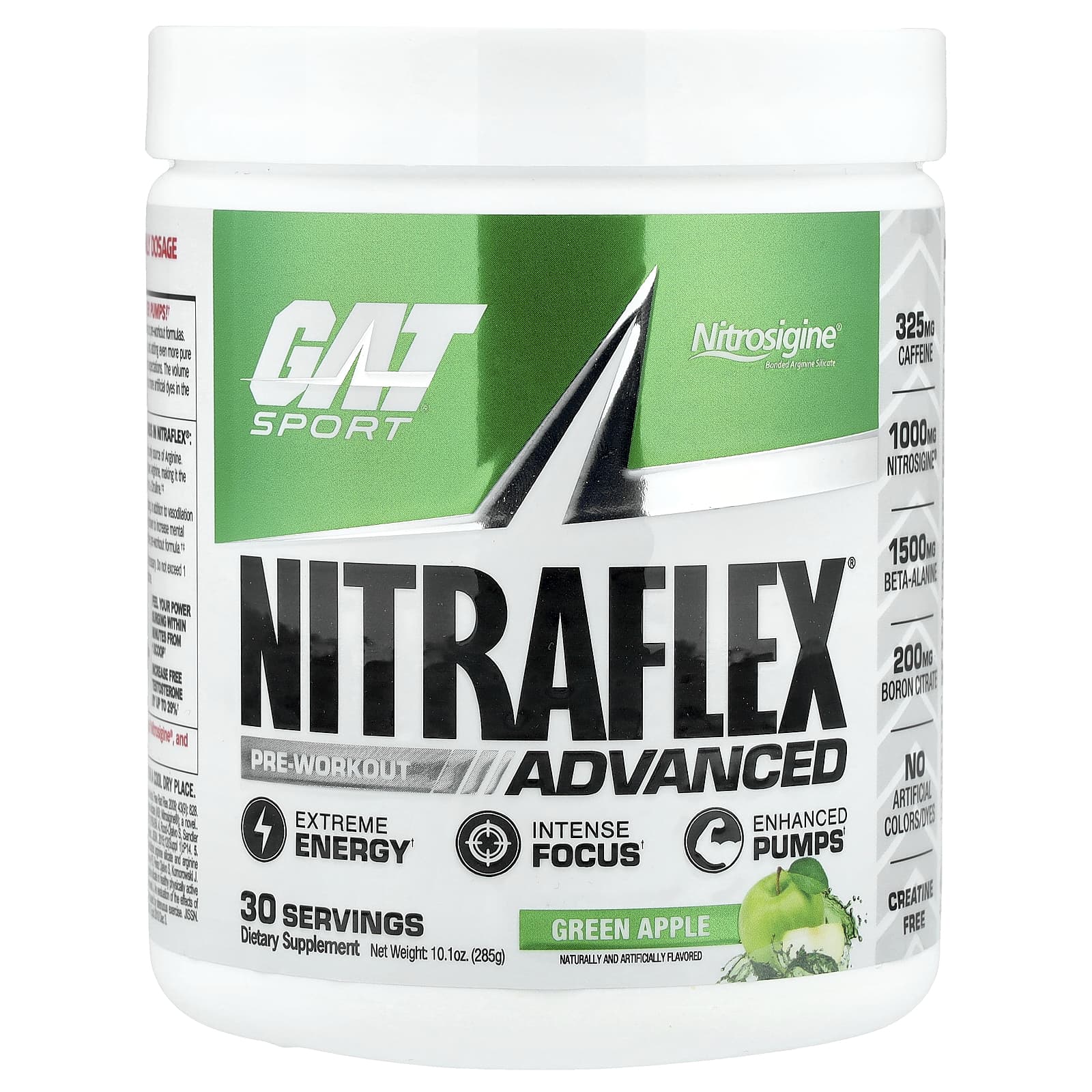 GAT, Sport, NITRAFLEX® Advanced, предтренировочный комплекс, со вкусом зеленого яблока, 285 г (10,1 унции)
