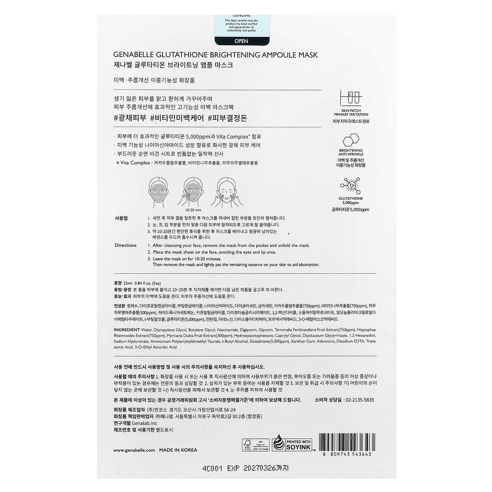 Маска для лица, содержащая глутатион, ингредиент, который, как известно, эффективно осветляет тусклую и огрубевшую кожу.
