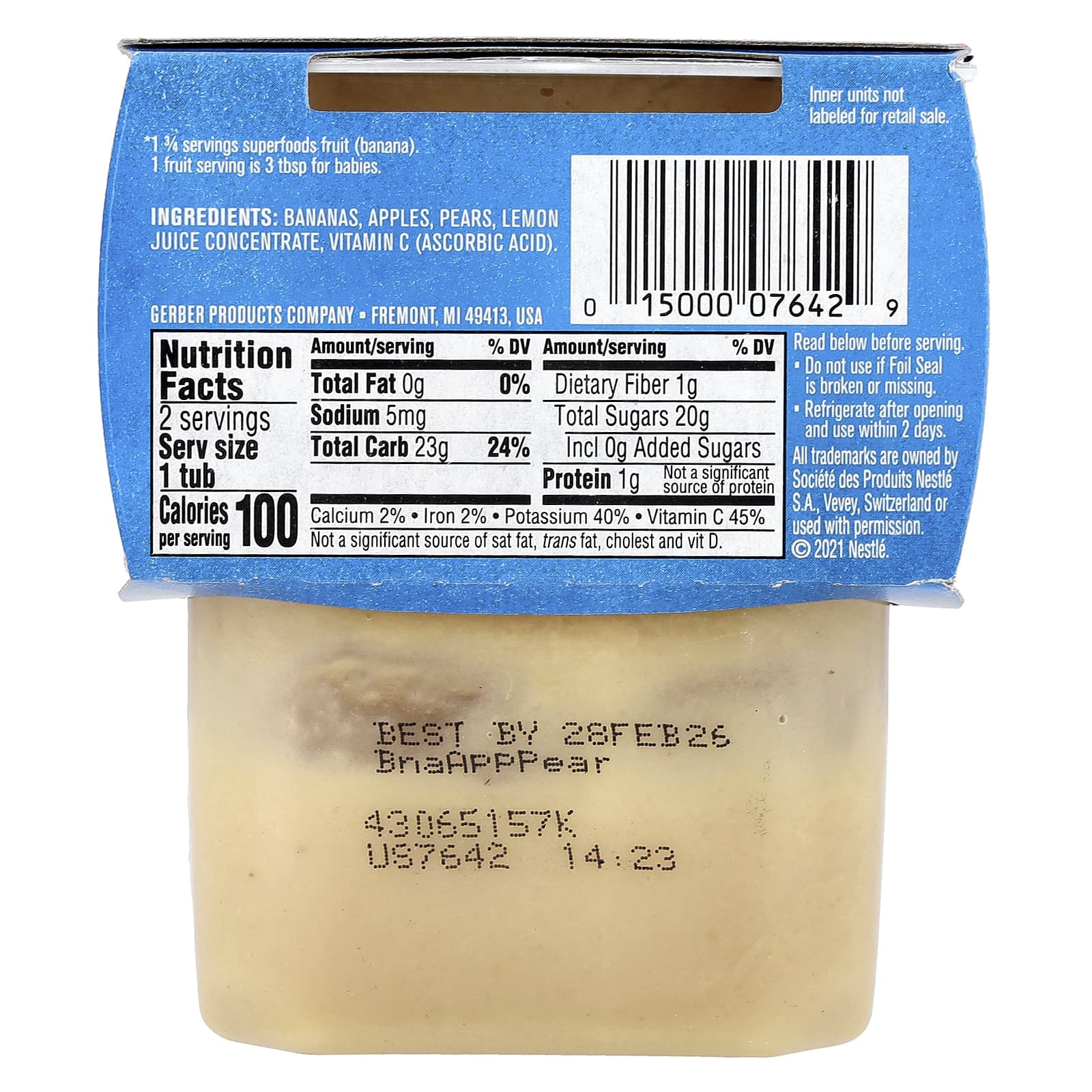 * 1 3/4 порции фруктов (банан). 1 порция фруктов - 3 ст. Л. Для младенцев