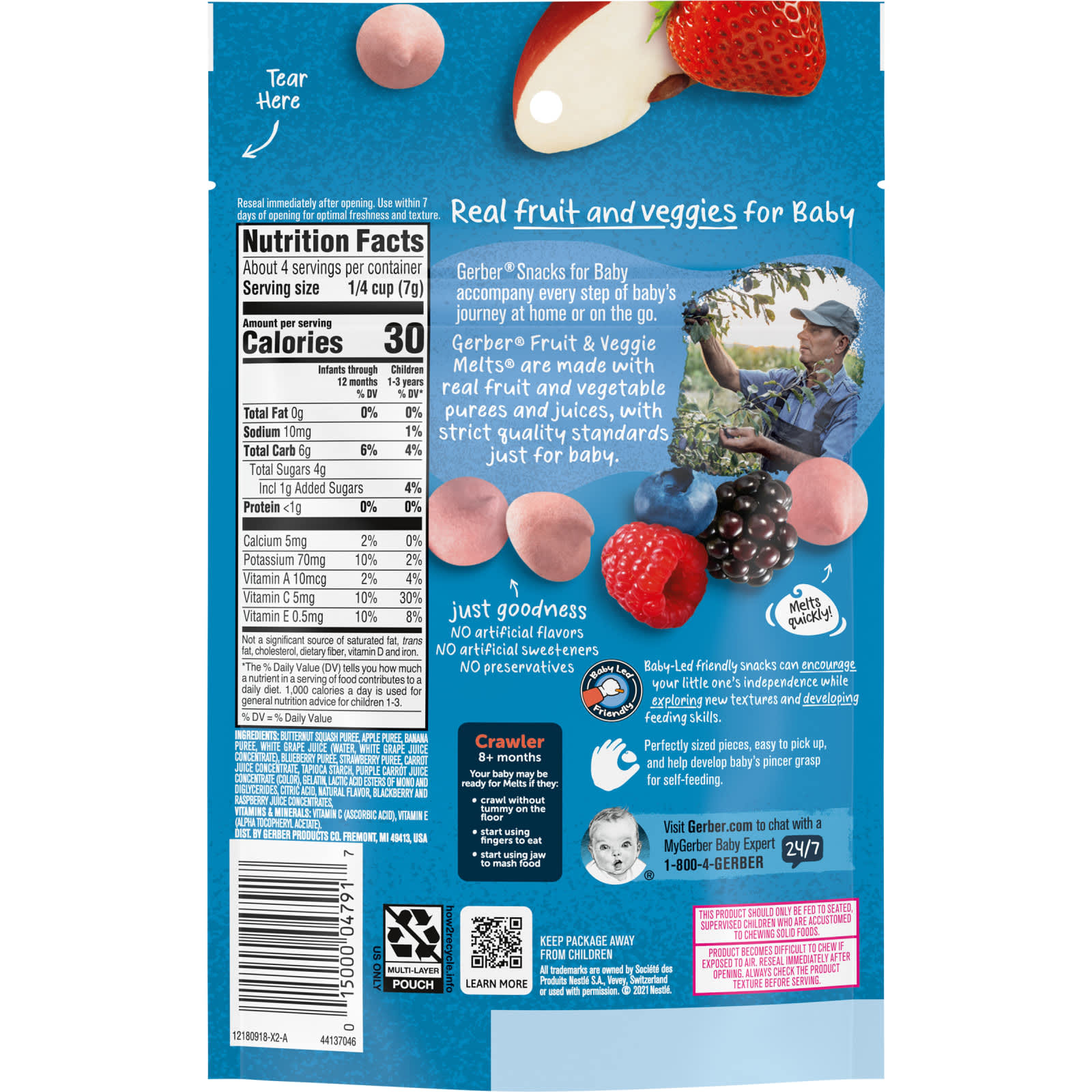 При употреблении продукта ребенок должен сидеть и находиться под присмотром взрослого. Продукт предназначен только для детей, которые уже умеют пережевывать твердую пищу.