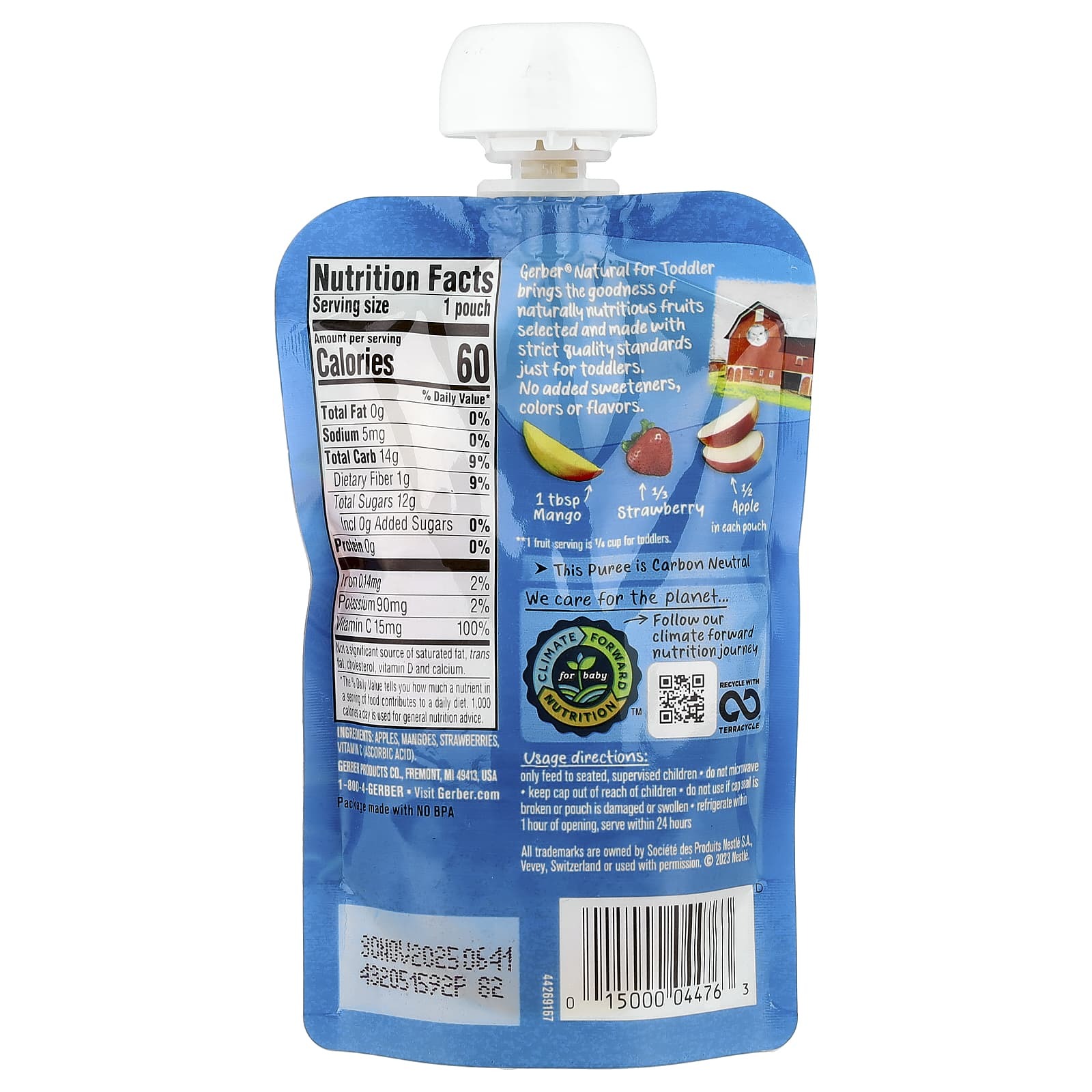 Gerber® Natural for Toddler содержит полезные свойства натуральных питательных фруктов, отобранных и изготовленных в соответствии со строгими стандартами качества, специально для малышей. Без добавленных подсластителей, красителей и ароматизаторов.