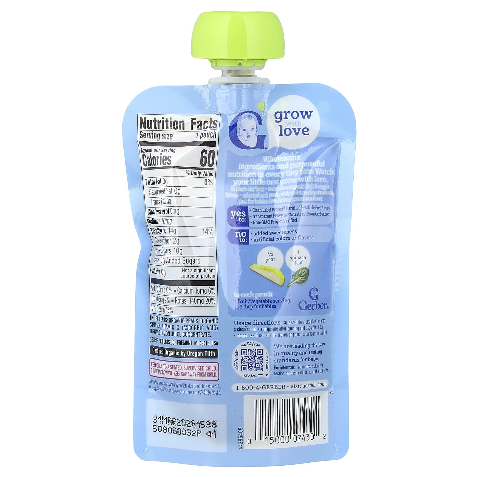 Органические груши, органический шпинат, витамин С (аскорбиновая кислота), органический концентрат лимонного сока.