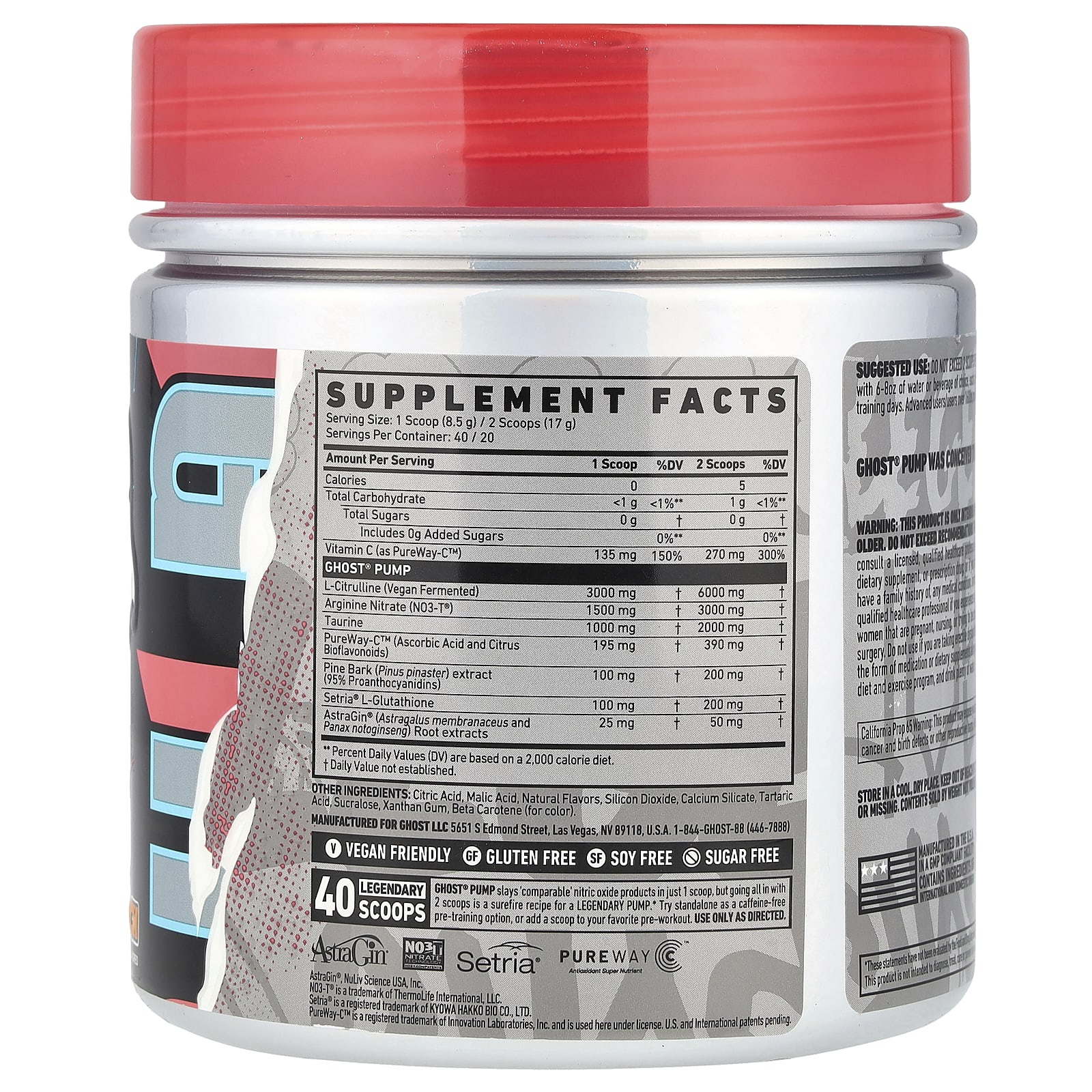 GHOST® PUMP убивает «сопоставимые» продукты оксида азота всего в 1 мерной ложке, но использование 2 мерных ложек - верный рецепт ЛЕГЕНДАРНОЙ НАСОСЫ. Попробуйте автономный прием перед тренировкой без кофеина или добавьте мерную ложку в любимый прием перед тренировкой. Применять только согласно инструкции.