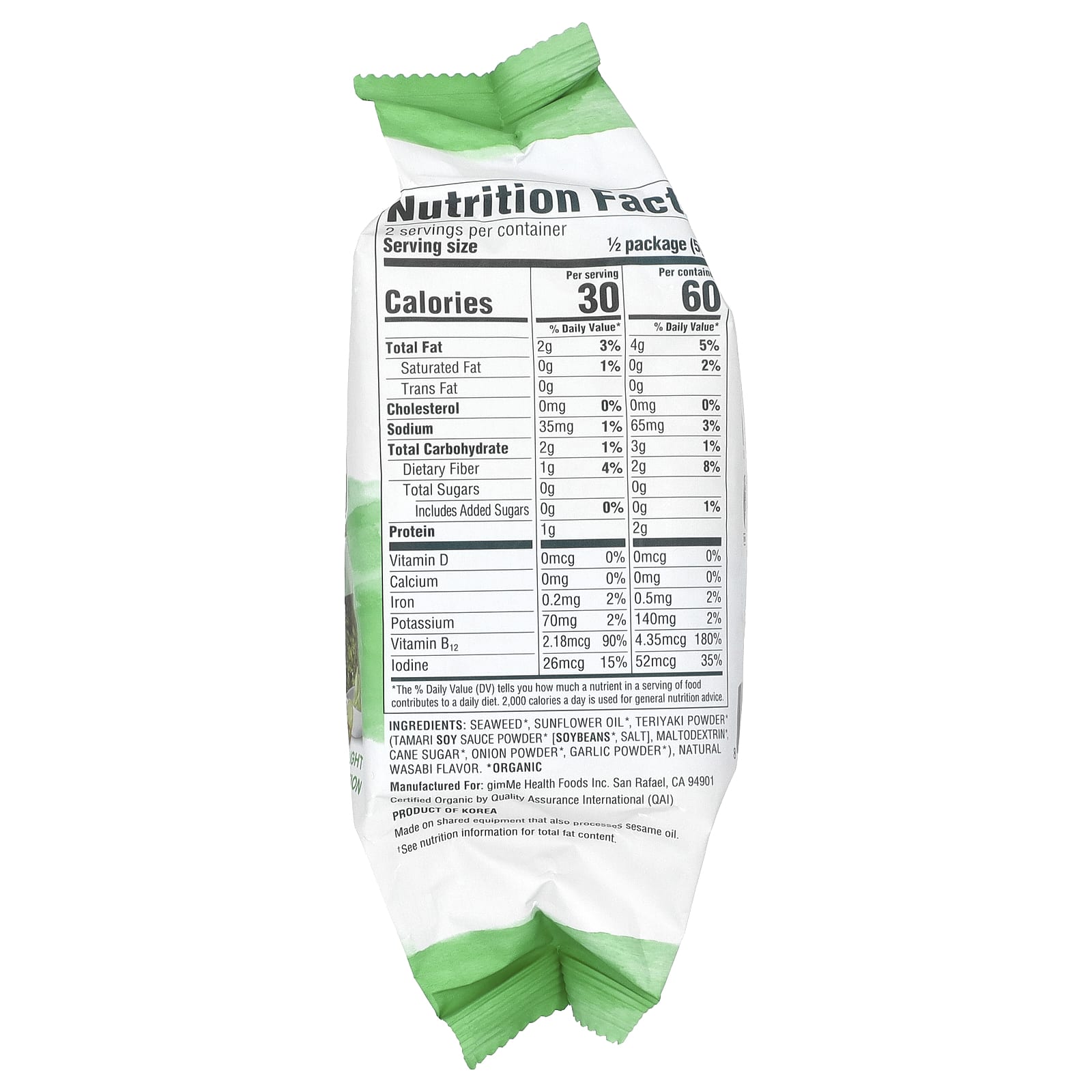 Морские водоросли*, подсолнечное масло*, порошок терияки* (порошок из соевого соуса тамари* [соевые бобы*, соль], мальтодекстрин*, тростниковый сахар*, луковый порошок*, чесночный порошок*), натуральный ароматизатор «Васаби».
