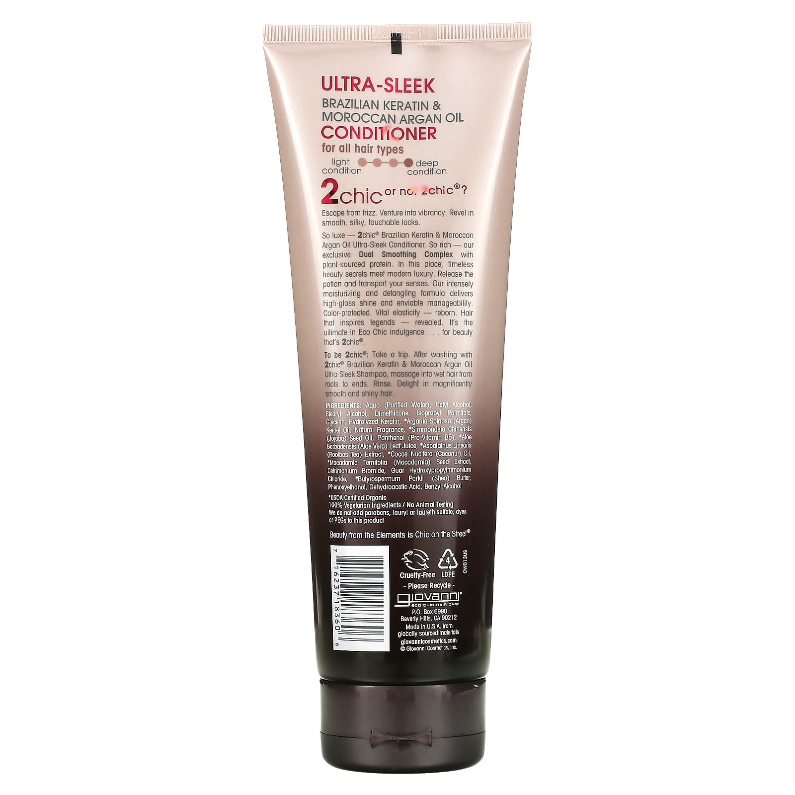 Giovanni, 2chic, кондиционер для придания ультраблеска, для всех типов волос, бразильский кератин и марокканское аргановое масло, 250 мл (8,5 жидк. унции)
