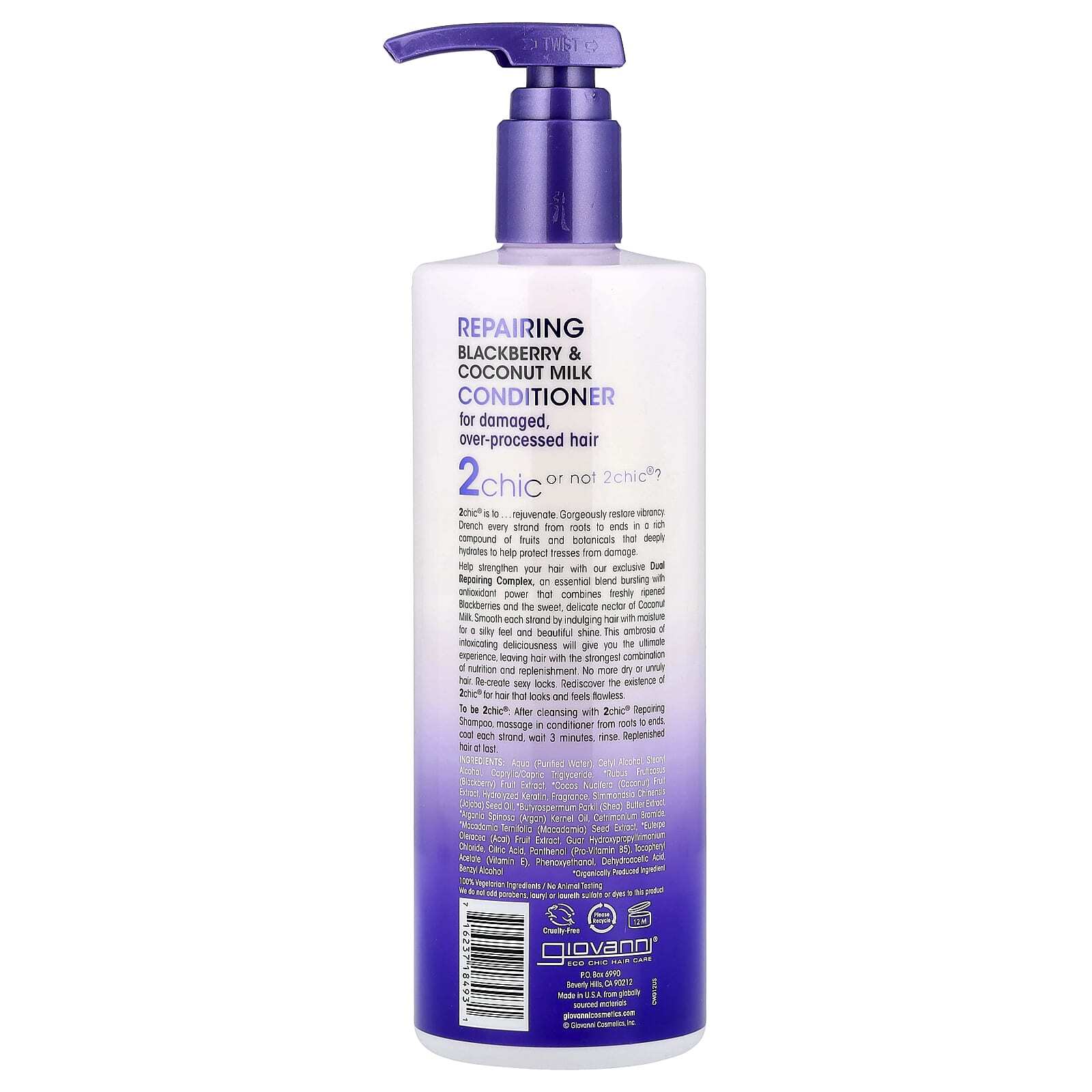 Наш эксклюзивный двойной восстанавливающий комплекс укрепляет волосы. Он содержит наполненную энергией смесь незаменимых компонентов с антиоксидантными свойствами, включая свежую спелую ежевику и сладкий нежный нектар кокосового молока. Разглаживайте каждую прядь, наполняя волосы влагой, придавая им шелковистость и красивый блеск. Этот роскошный и пьянящий кондиционер для волос с великолепным ароматом подарит вам незабываемые ощущения, обеспечив волосам интенсивное питание и восстановление. Забудьте о сухих или непослушных волосах. Воссоздайте самые желанные прически. Откройте для себя заново 2chic® для волос, которые выглядят и чувствуют себя безупречно.