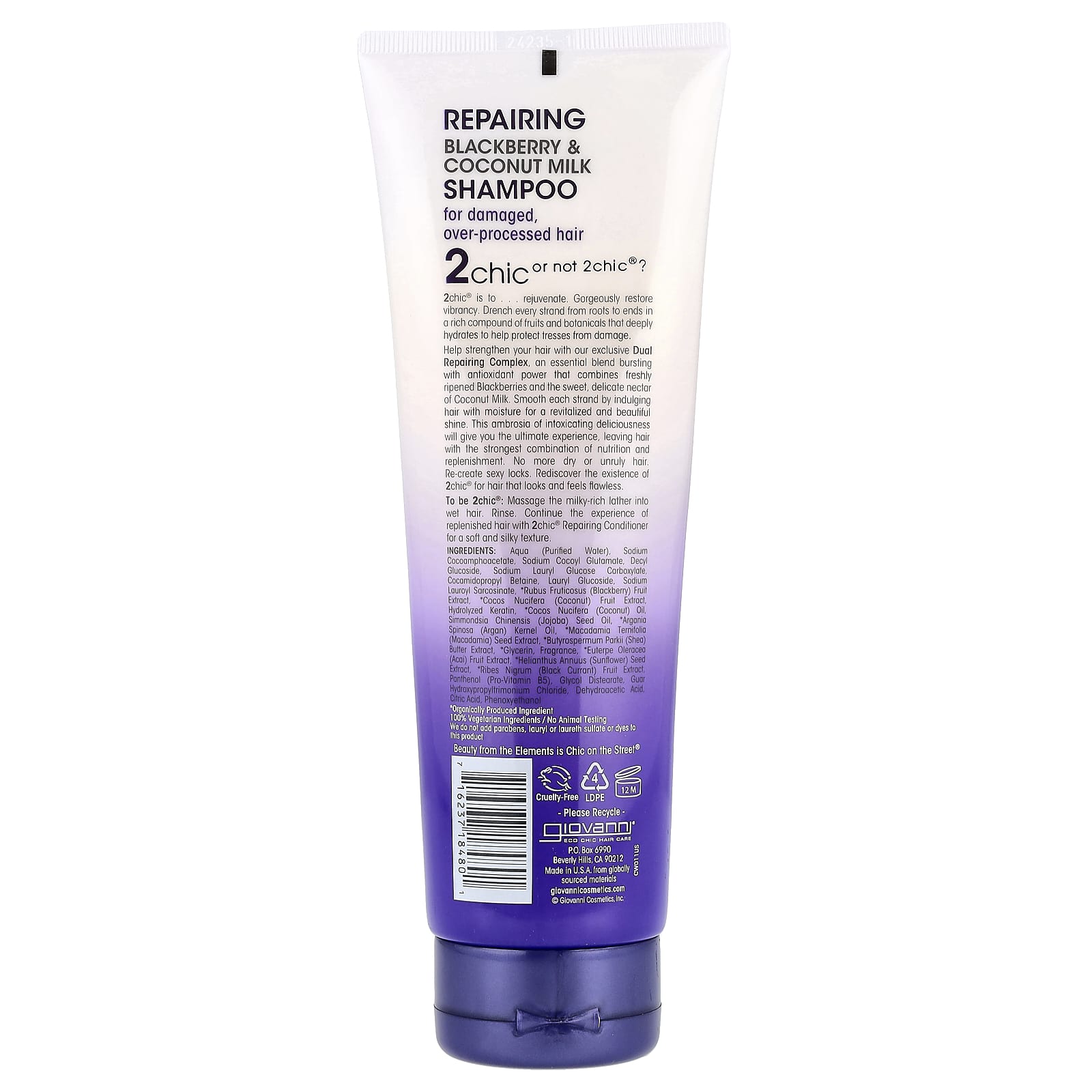 Наш эксклюзивный двойной восстанавливающий комплекс укрепляет волосы. Он содержит наполненную энергией смесь незаменимых компонентов с антиоксидантными свойствами, включая свежую спелую ежевику и сладкий нежный нектар кокосового молока. Разглаживайте каждую прядь, наполняя волосы влагой, чтобы придать им свежий и красивый блеск. Этот роскошный и пьянящий кондиционер для волос с великолепным ароматом подарит вам незабываемые ощущения, обеспечив волосам интенсивное питание и восстановление. Забудьте о сухих или непослушных волосах. Воссоздайте самые желанные прически. Откройте для себя заново 2chic® для волос, которые выглядят и чувствуют себя безупречно.
