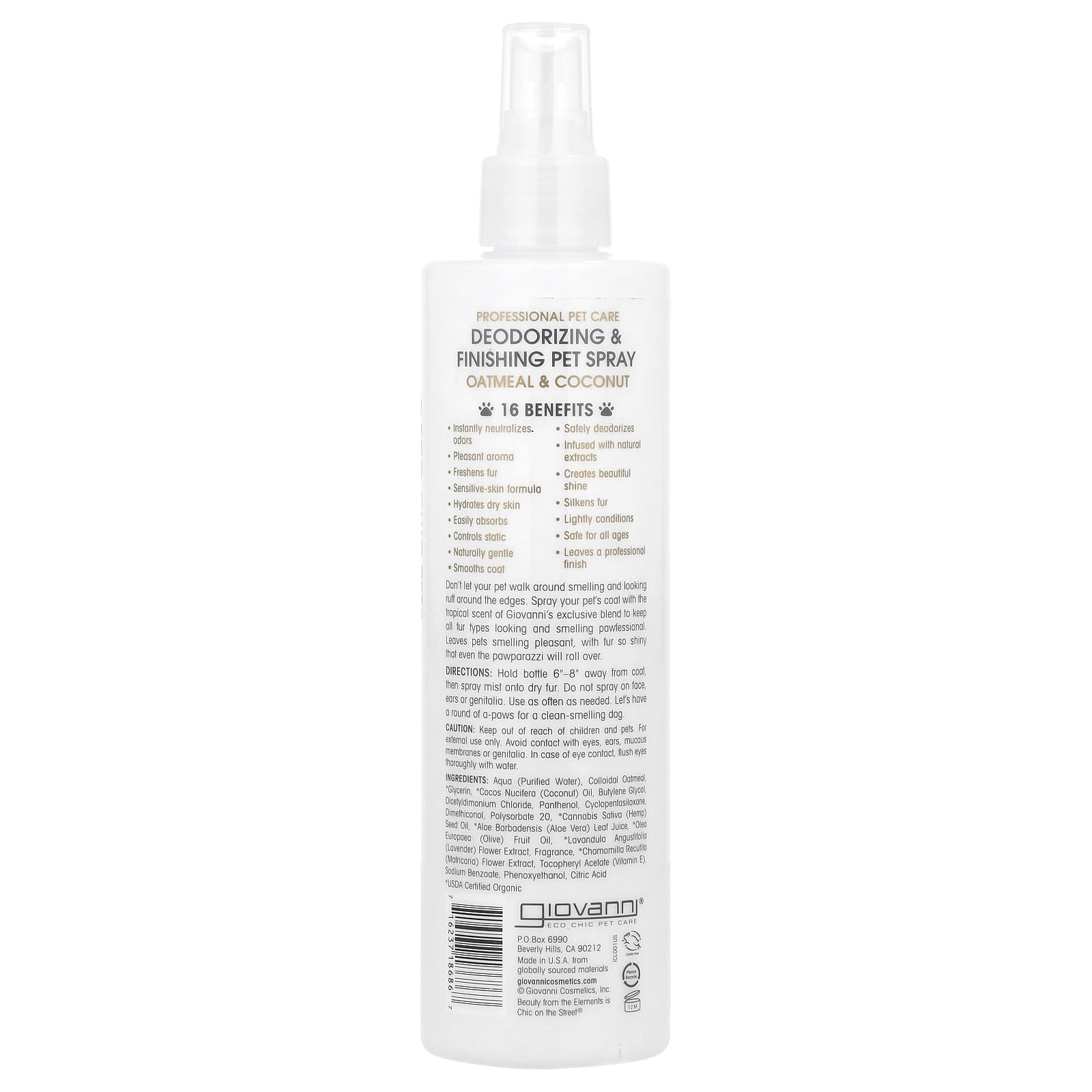 Не позволяйте своему питомцу ходить, нюхая и выглядывая по краям. Распылите на шерсть вашего питомца тропический аромат эксклюзивной смеси Giovanni, чтобы шерсть любого типа выглядела и пахла профессионально. Придает питомцу приятный запах, а шерсть настолько блестящая, что даже паварацци может переворачиваться.