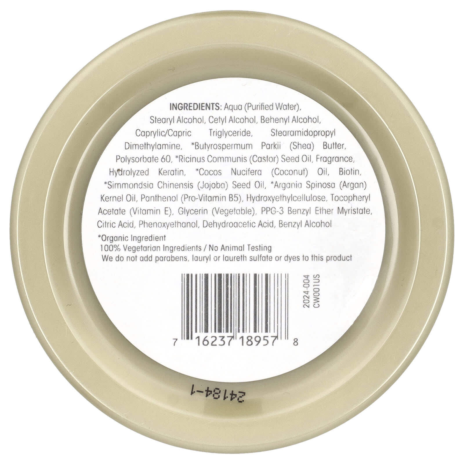 Aqua (очищенная вода). стеариловый спирт, цетиловый спирт, бегениловый спирт, каприловый/каприновый триглицерид, стеарамидопропил диметиламин, масло ши (Butyrospermum parkii), полисорбат 60, касторовое масло (ricinus communis), отдушка, гидролизованный кератин, кокосовое масло (Cocos nucifera), биотин, масло семян жожоба (Simmondsia chinensis)*, масло из косточек арганы (Argania spinosa), пантенол (провитамин b5), гидроксиэтилцеллюлоза, токоферилацетат (витамин Е), глицерин (растительный), ППГ-3 бензилового эфира миристат, лимонная кислота, феноксиэтанол, дегидроуксусная кислота, бензиловый спирт.