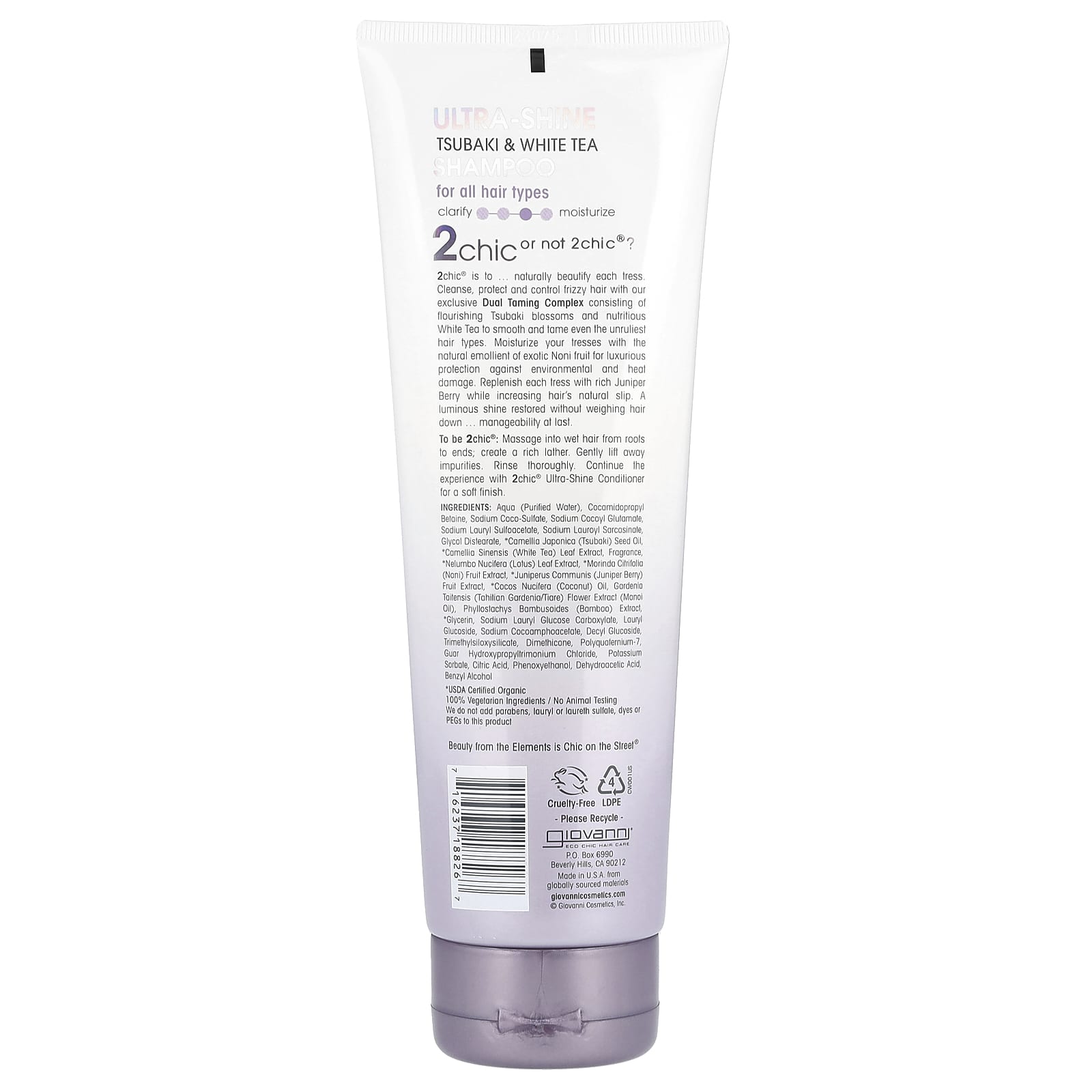 To be 2chic®: Massage into wet hair from roots to ends; create a rich lather. Gently lift away impurities. Rinse thoroughly. Continue the experience with 2chic® Ultra-Shine Conditioner for a soft finish.