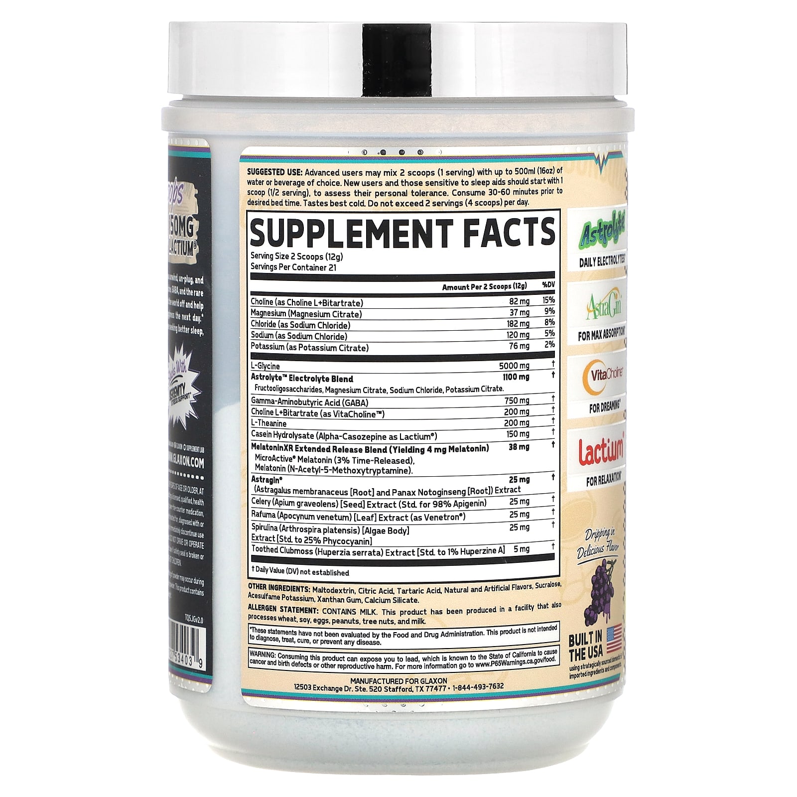 Опытные пользователи могут смешать 2 мерные ложки (1 порцию) с не более чем 500 мл (16 унциями) воды или напитка по выбору. Лицам, которые впервые принимают снотворные, а также людям, страдающим аллергией, следует начать с 1 мерной ложки (1/2 порции) для оценки личной переносимости. Принимайте за 30–60 минут до желаемого времени сна. Наиболее вкусен в холодном виде. Не употреблять более 2 порций (4 мерных ложек) в день.