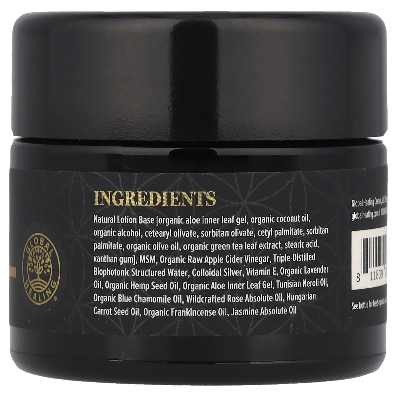 Натуральная основа лосьона [гель из органических листьев алоэ, органическое кокосовое масло, органический спирт, цетеарил оливат, сорбитан оливат, цетил пальмитат, сорбитан пальмитат, органическое оливковое масло, органический экстракт листьев зеленого чая, стеариновая кислота, ксантановая камедь], МСМ, органический неочищенный яблочный уксус, трижды дистиллированная биофотонная структурированная вода, коллоидное серебро, витамин Е, органическое лавандовое масло, органическое масло семян конопли, органический гель из листьев алоэ, Тунисское масло нероли, органическое масло голубой ромашки, абсолютное масло дикорастущей розы, Масло семян венгерской моркови, органическое масло ладана, абсолютное масло жасмина.