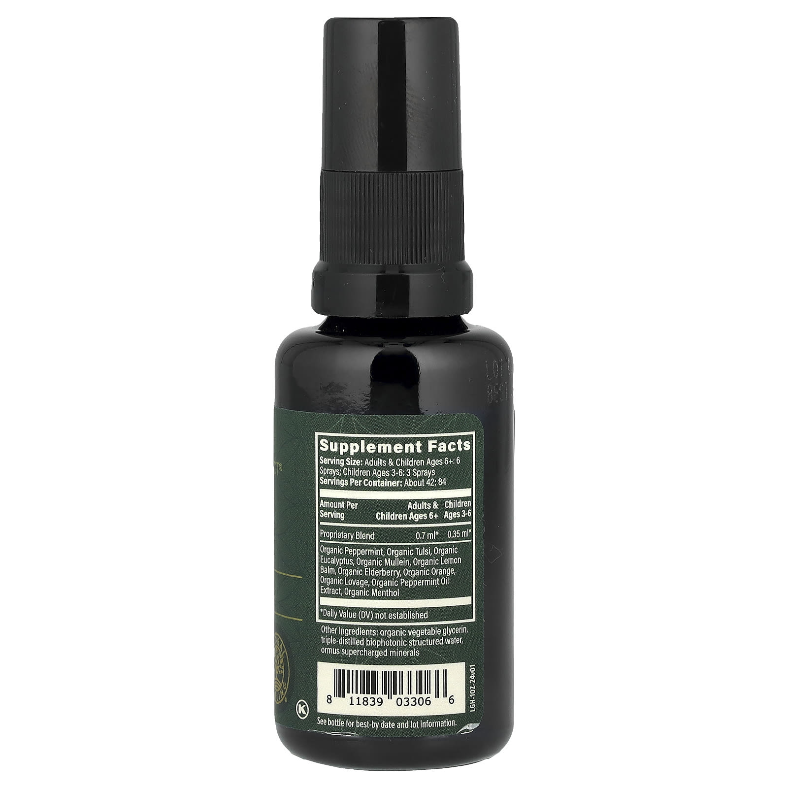 | Запатентованная смесь Органическая перечная мята, органический тулси, органический эвкалипт, органический коровяк, органическая мелисса, органическая бузина, органический апельсин, органический любисток, экстракт органического масла перечной мяты, органический ментол | 0,7 мл * | 0,35 мл * |
