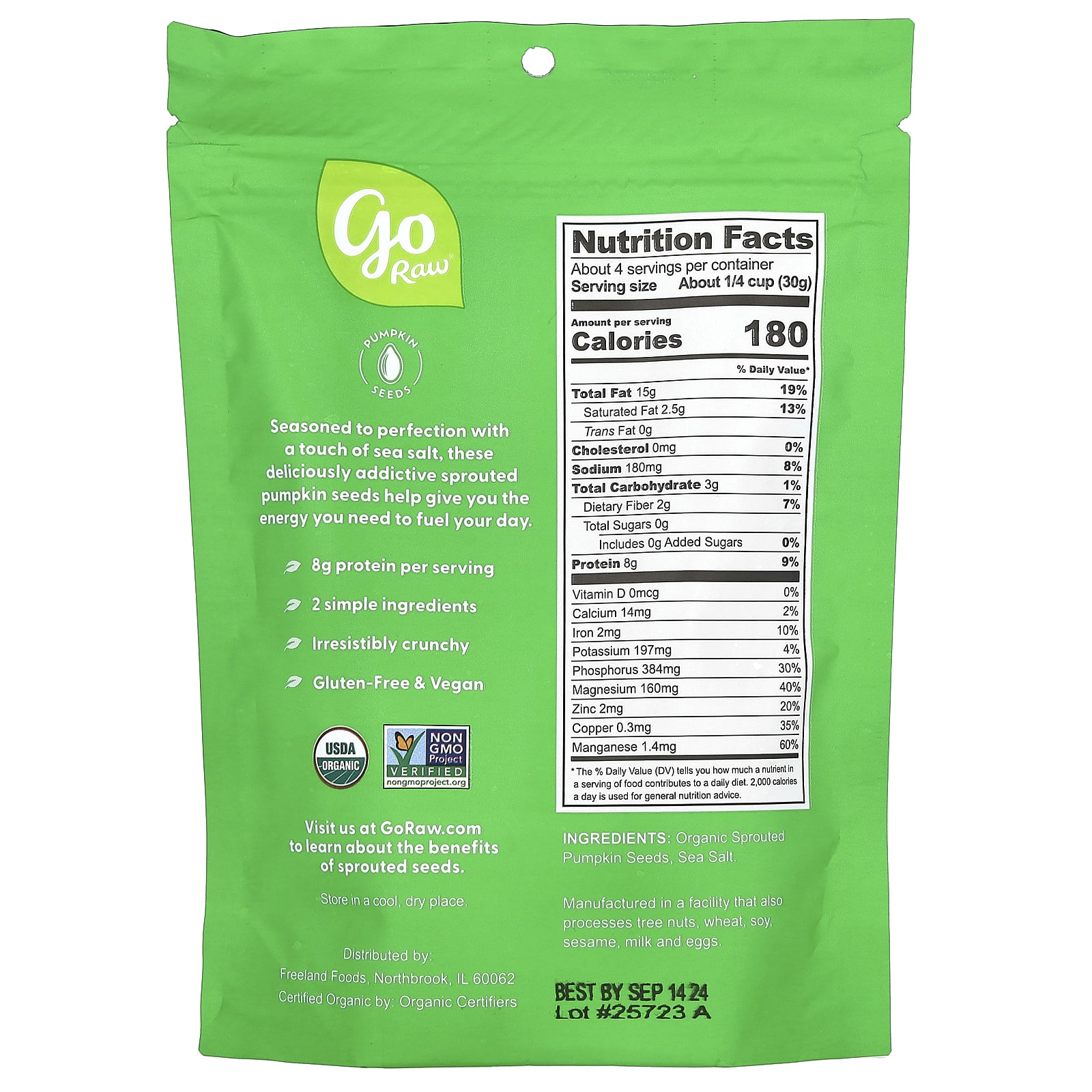 Органические пророщенные семена тыквы, морская соль.