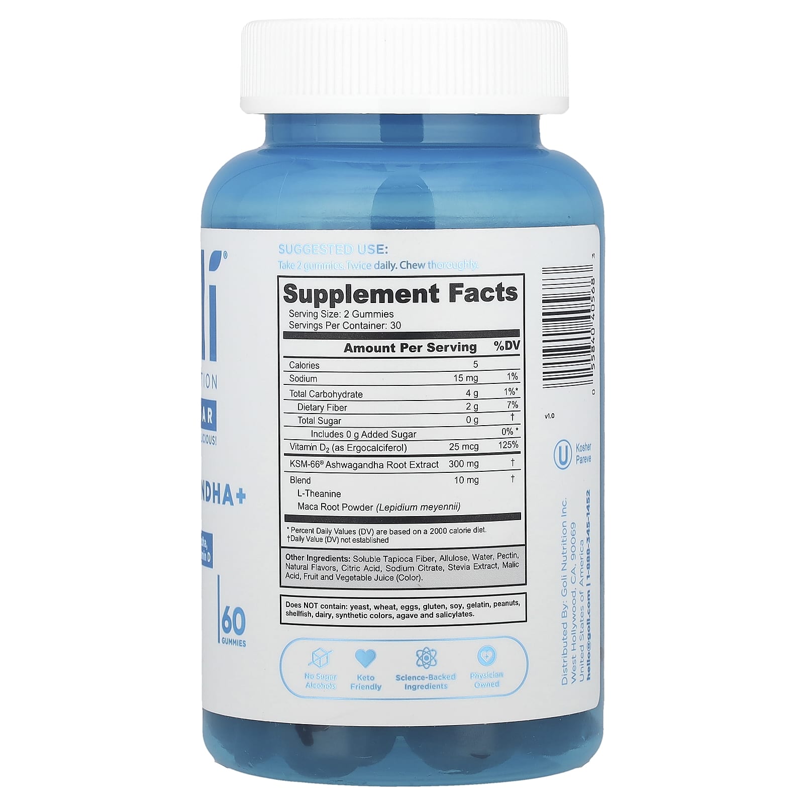 Мы гордимся тем, что жевательные мармеладки Goli®Ashwagandha + Zero Sugar не содержат глютена, ГМО, желатина и являются веганскими. Здоровье просто.