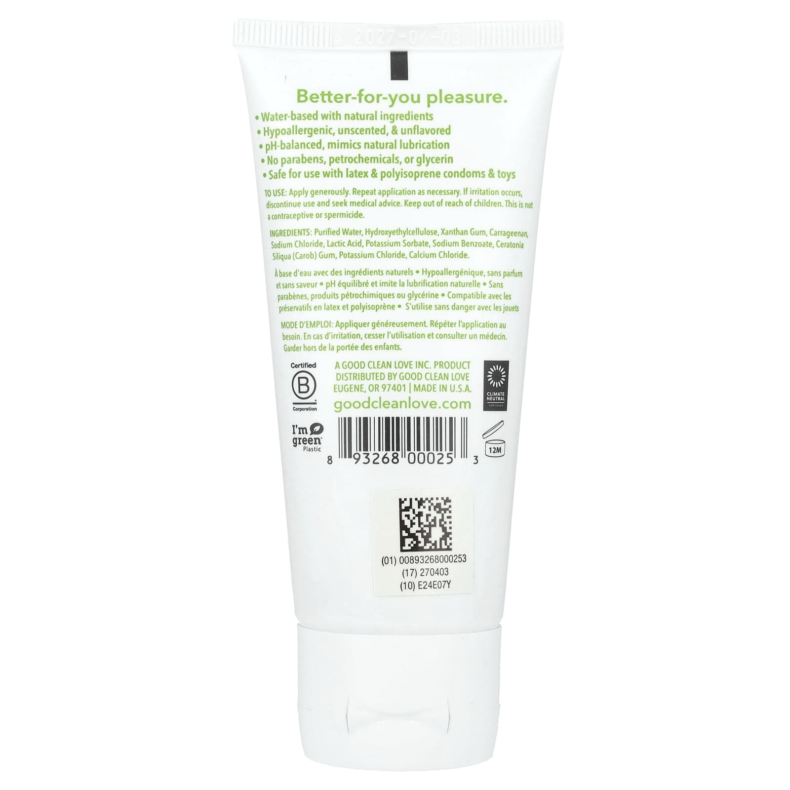 Очищенная вода, гидроксиэтилцеллюлоза, ксантановая камедь, каррагинан, хлорид натрия, молочная кислота, сорбат калия, бензоат натрия, камедь рожкового дерева (Ceratonia siliqua), хлорид калия, хлорид кальция.