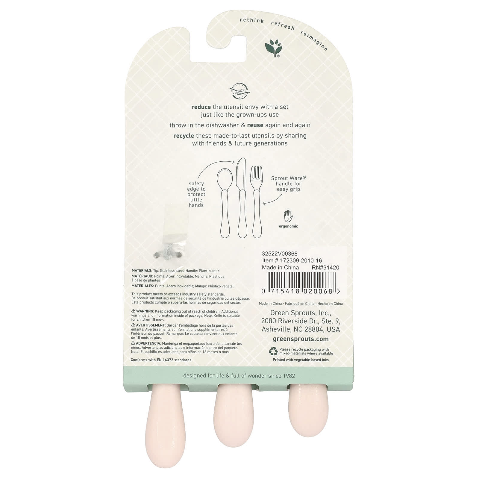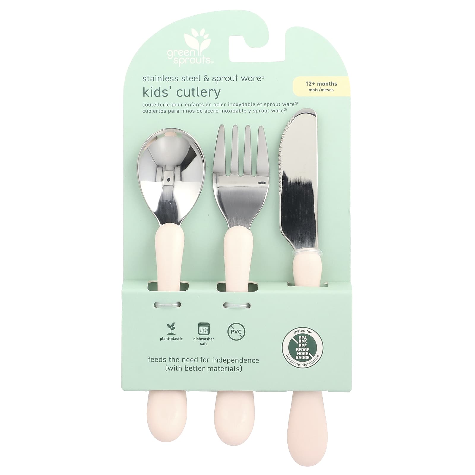 Green Sprouts, Детские столовые приборы для детей от 12 месяцев, нержавеющая сталь и ростки®, розовый, 3 шт.