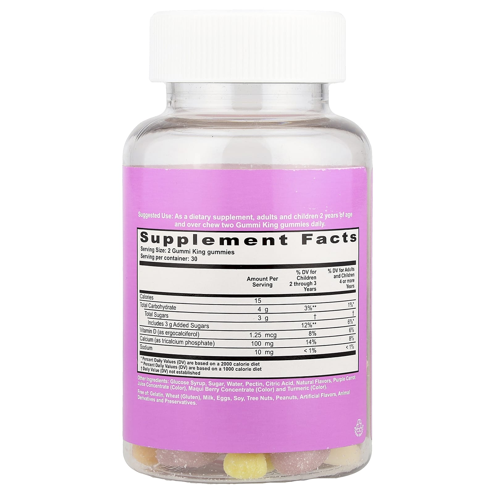 Кальций и витамин D от GummiKing™ необходимы для здоровья костей и развития растущих детей. Кальций способствует укреплению и поддержанию здоровья костей, а витамин D необходим для усвоения кальция. Витамин D также помогает поддерживать общее здоровье иммунной системы и всего организма.