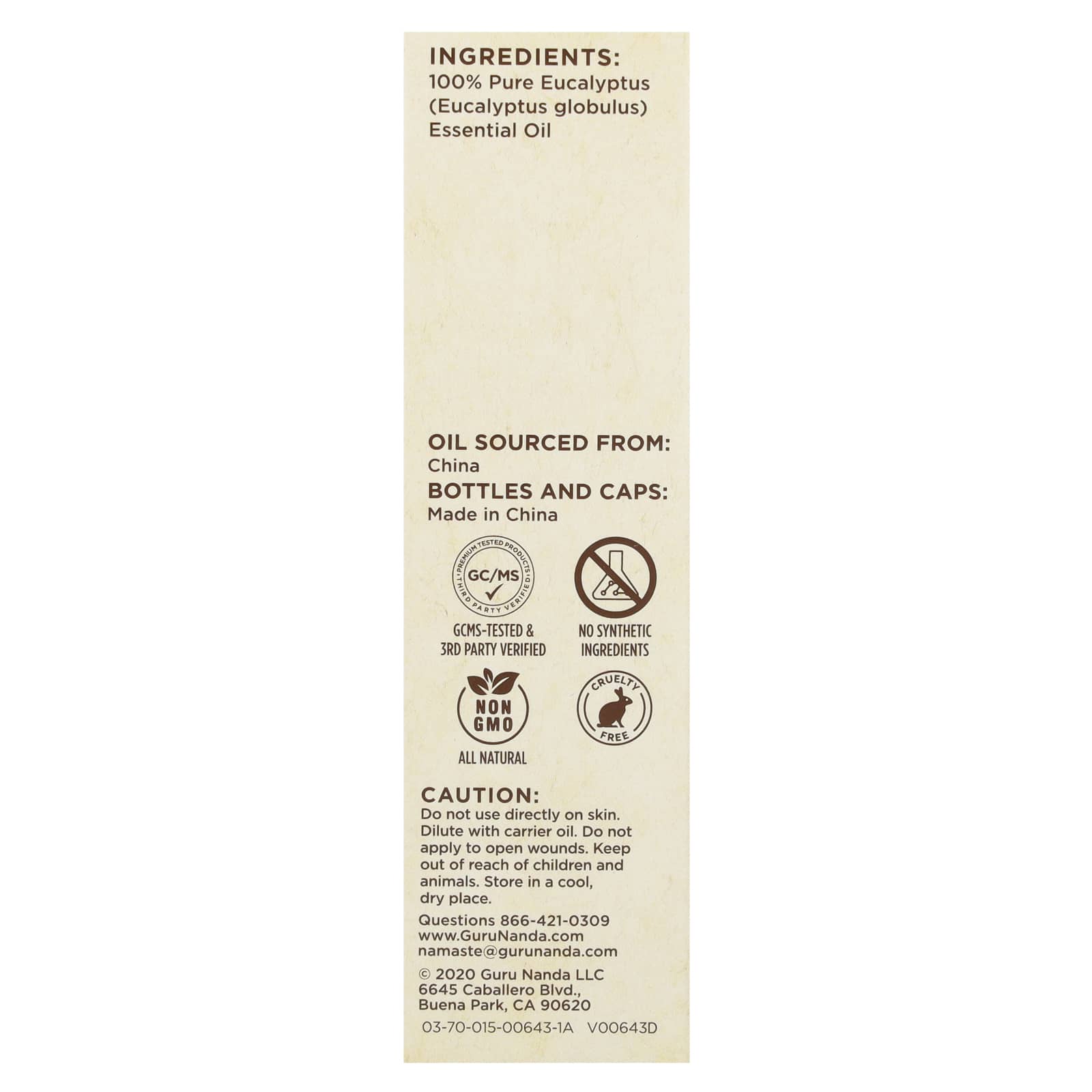 GuruNanda, на 100% чистое и натуральное эфирное масло, эвкалипт, 15 мл (0,5 жидк. унции)