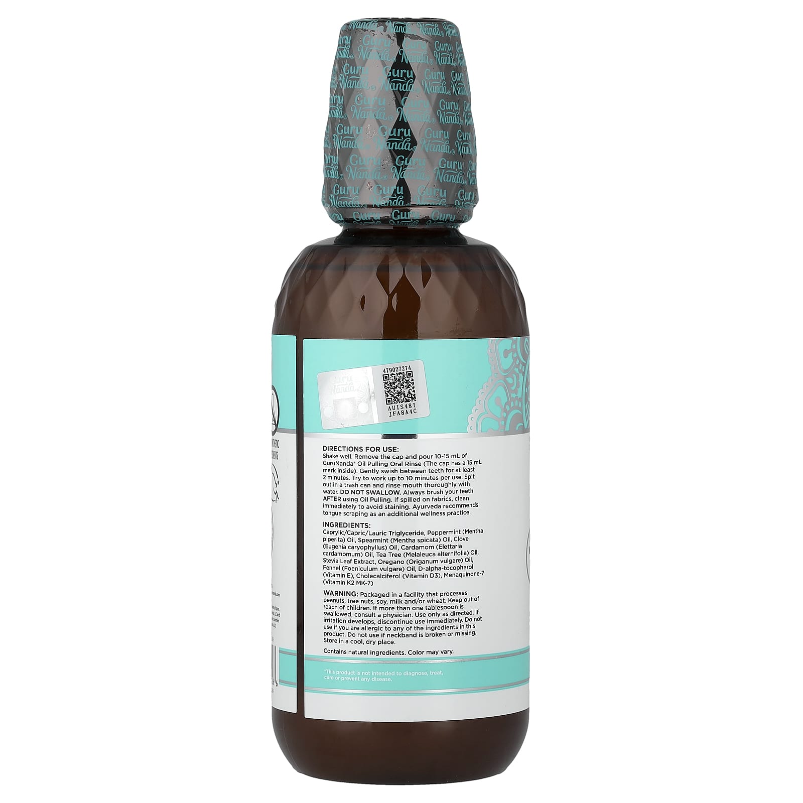Хорошо встряхните перед использованием. Снимите колпачок и влейте 10-15 мл ополаскивателя для полости рта GuruNanda Oil Extract (на колпачке есть отметка 15 мл). Осторожно полощите зубы в течение не менее 2 минут. Попробуйте использовать до 10 минут для каждого использования. Сплюньте в мусорное ведро и тщательно прополосните рот водой. Не глотать. Всегда чистите зубы после использования Oil Extract. При проливе средства на ткань немедленно удалите его, чтобы не оставлять пятен. Аюрведа рекомендует очищение языка в качестве дополнительной оздоровительной практики.