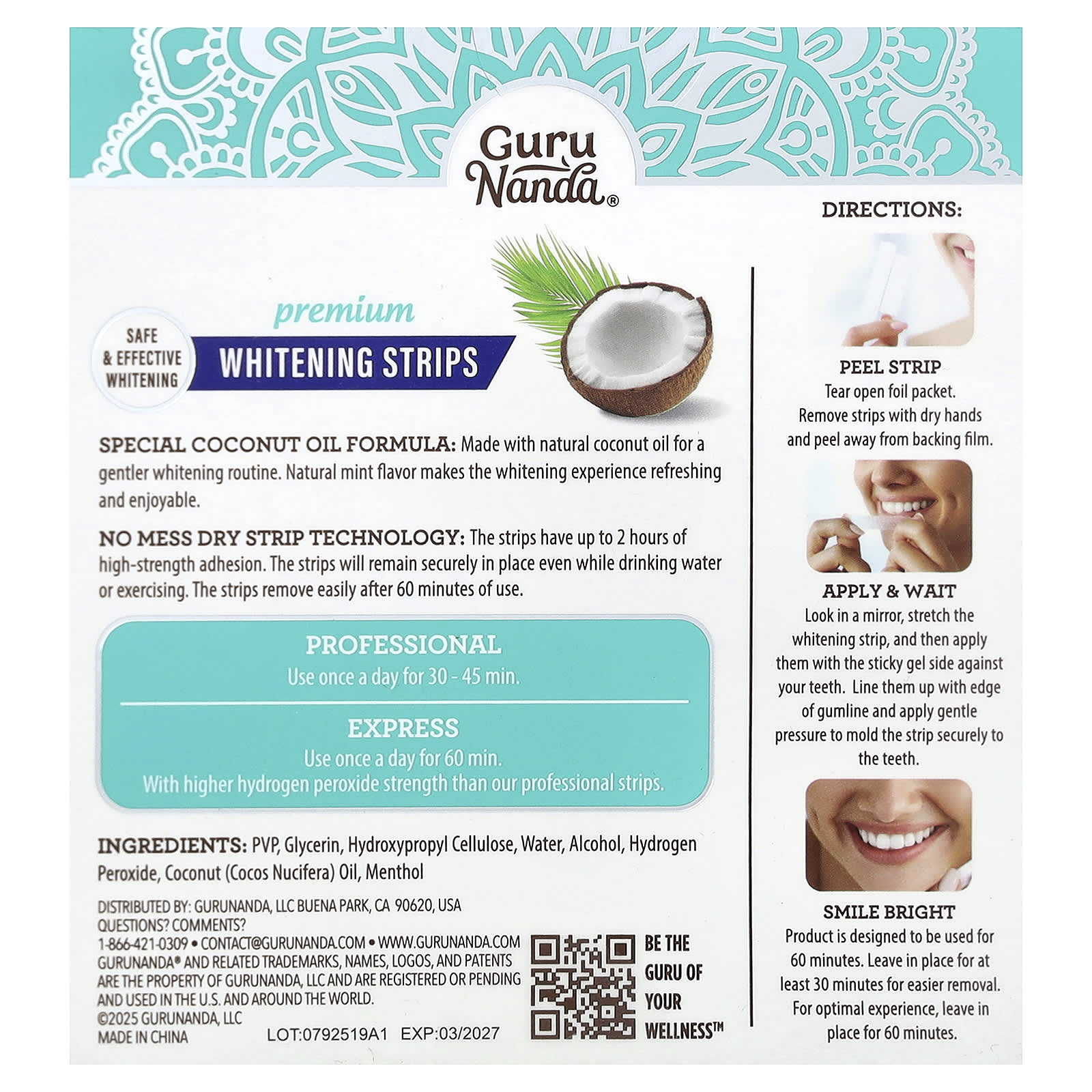 Экспресс: Используйте один раз в день в течение 60 минут. Содержит более высокую концентрацию перекиси водорода, чем в наших профессиональных полосках.