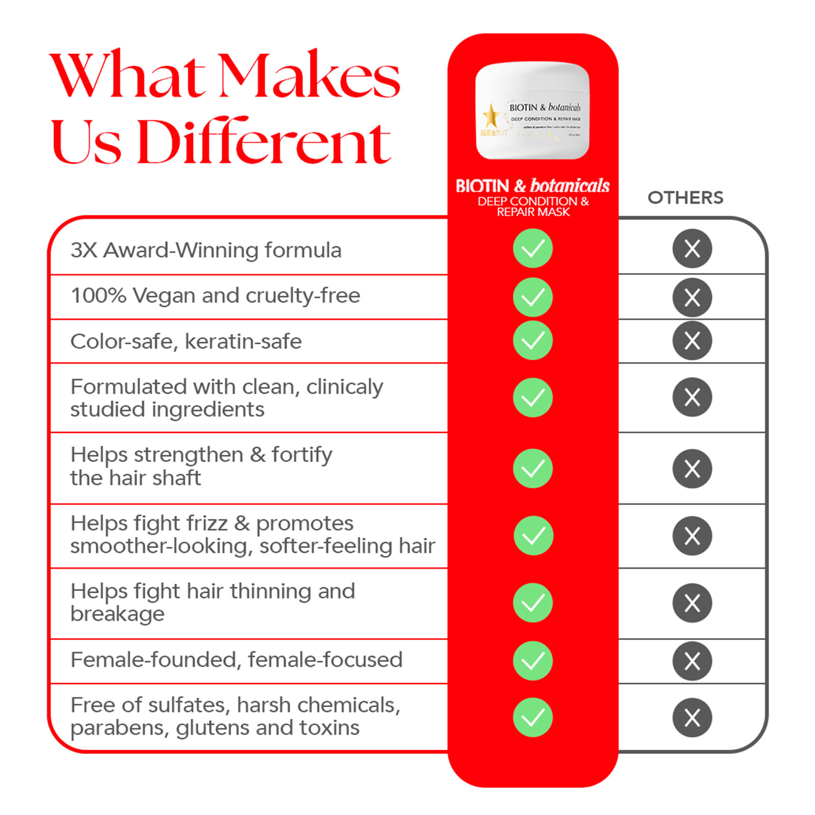 Мощная смесь питательного биотина и растительных компонентов, которые заметно восстанавливают, восстанавливают и глубоко кондиционируют сухие, поврежденные, излишне обработанные и тусклые волосы. Эта чистая, на 100% веганская, безопасная для окрашенных волос формула направляет каждую прядь волос, чтобы зафиксировать максимальное количество влаги и минимизировать повреждение и ломкость, делая волосы более сильными, длинными, густыми и мягкими на ощупь. Для всех типов и текстур волос.