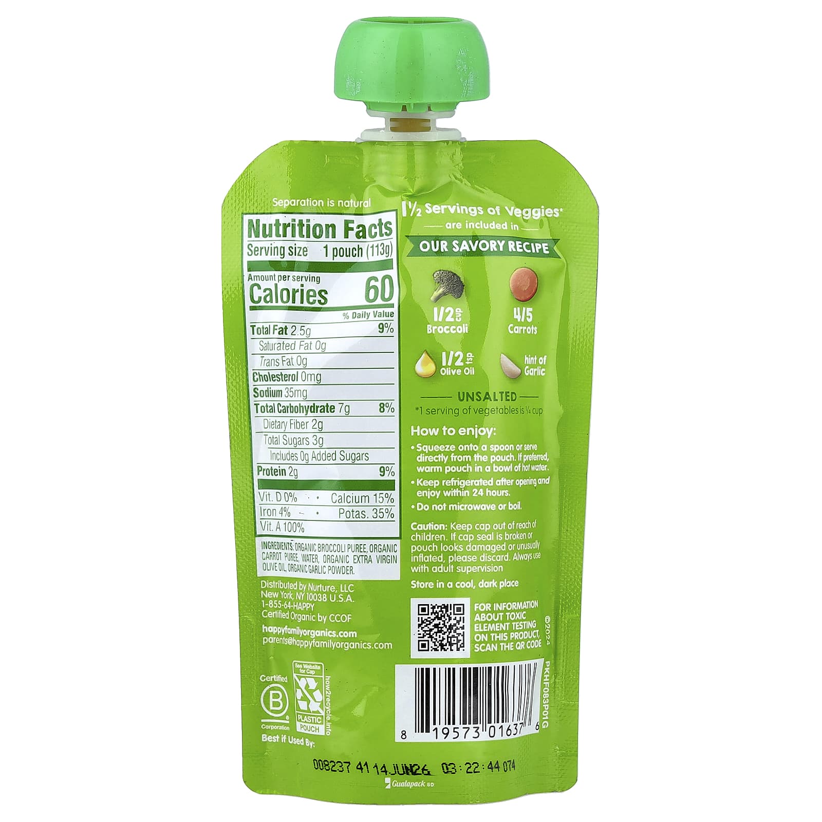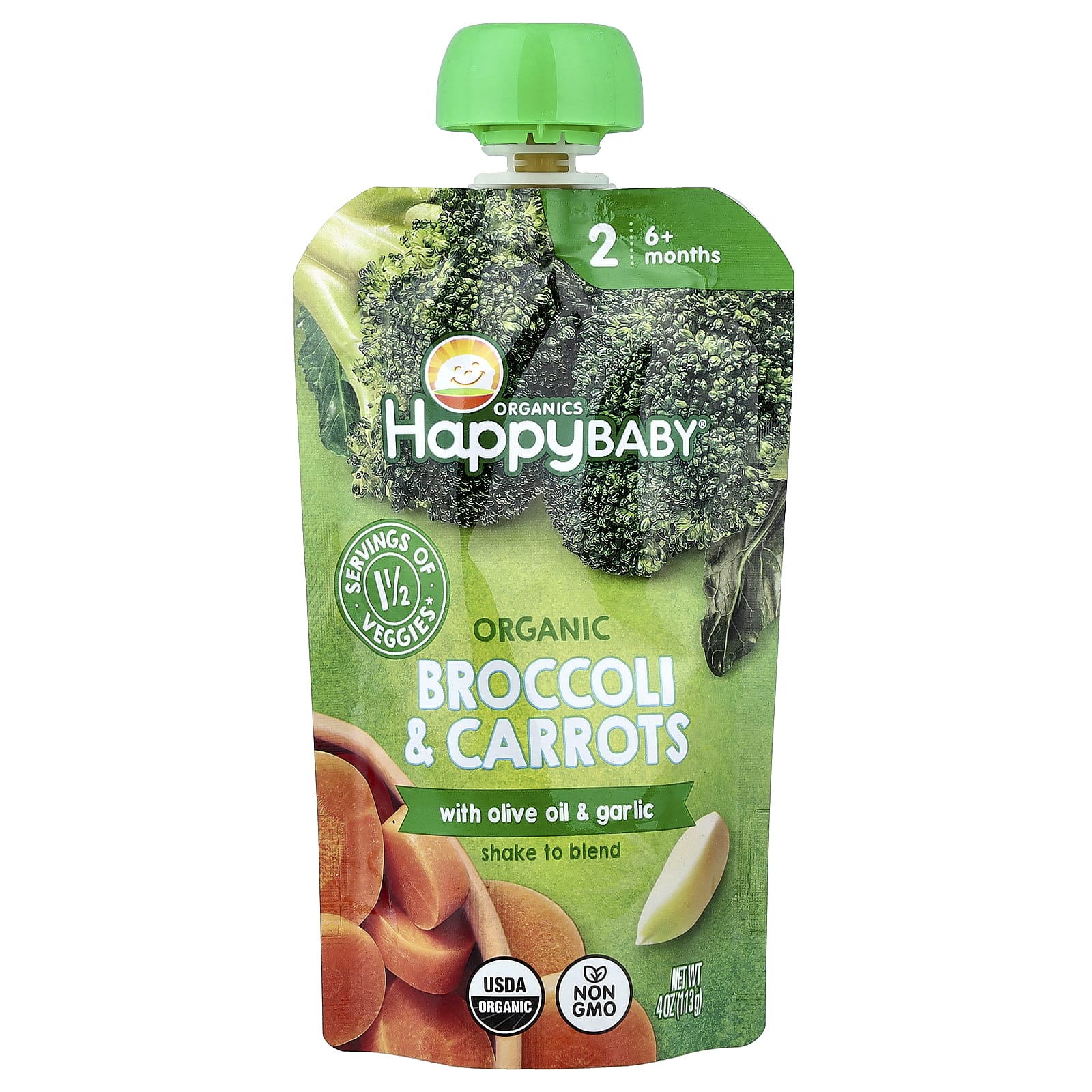 Happy Family Organics, Happy Baby®, органическая брокколи и морковь с оливковым маслом и чесноком, для детей от 6 месяцев, 113 г (4 унции)