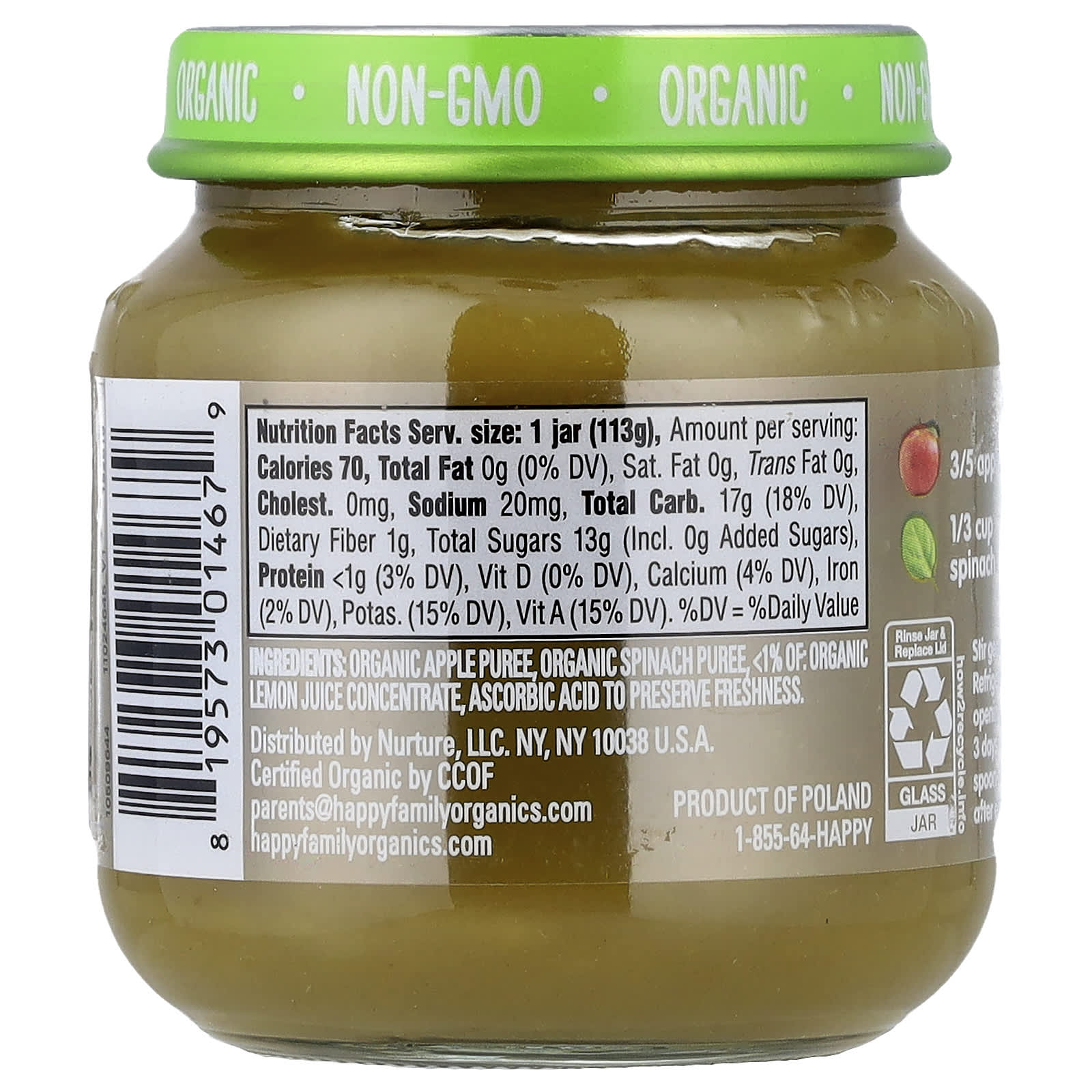 Органическое яблочное пюре, пюре из органического шпината, & amp; lt; 1%: органический концентрат лимонного сока, аскорбиновая кислота для сохранения свежести.