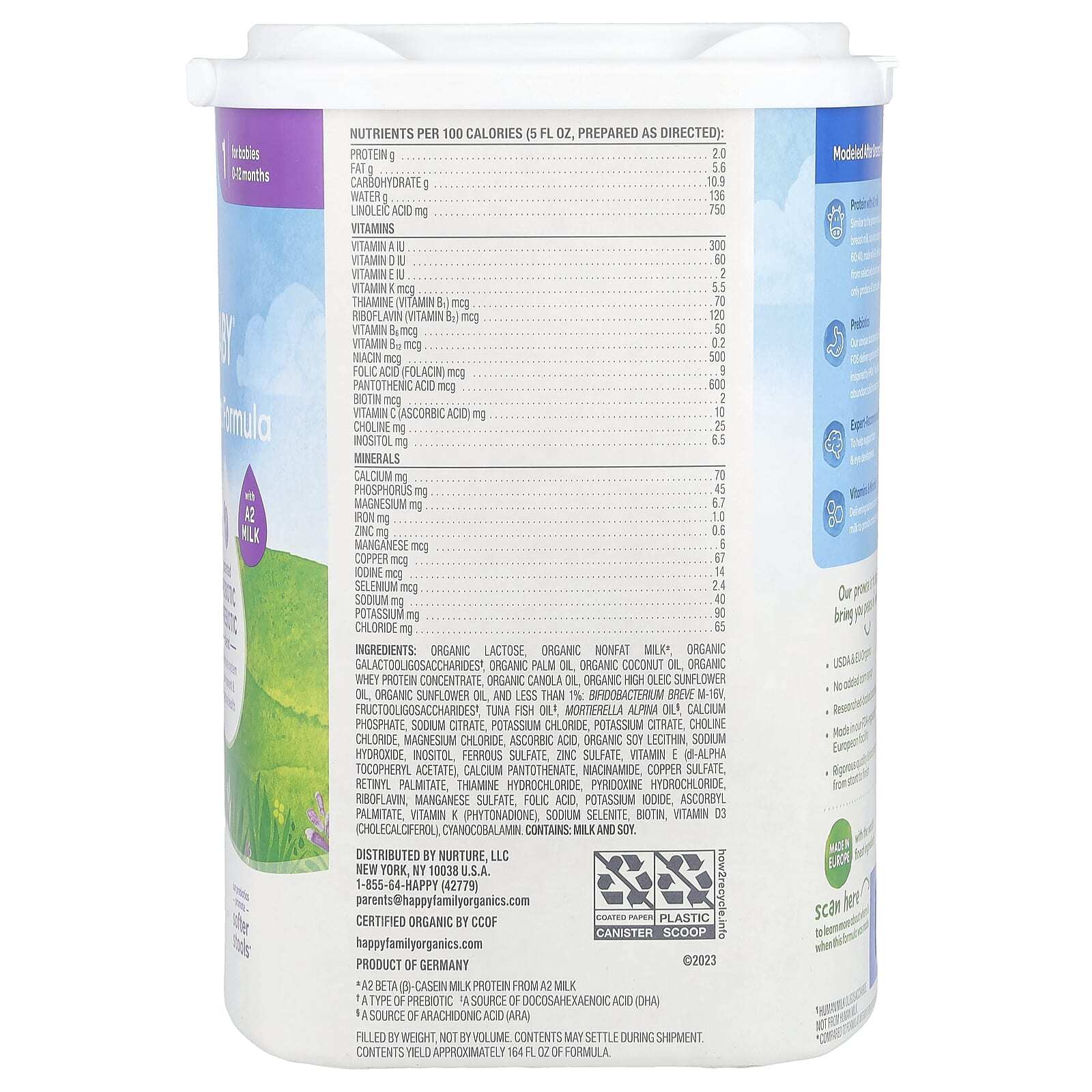 Органическая лактоза, органическое обезжиренное молоко, органические галактоолигосахариды †, органическое пальмовое масло, органическое кокосовое масло, концентрат органического сывороточного протеина, органическое рапсовое масло, органическое высокоолеиновое подсолнечное масло, органическое подсолнечное масло, и менее 1%: бифидобактерии бреве м-16в, фруктоолигосахариды †, жир тунца ‡, масло мортиереллы альпийской§, фосфат кальция, цитрат натрия, цитрат калия, хлорид калия, холин хлорид, хлорид магния, сульфат железа, аскорбиновая кислота, органический лецитин из сои, гидроксид натрия, инозитол, сульфат цинка, витамин E (dl-альфа токоферилацетат), пантотенат кальция, никотинамид, сульфат меди, ретинилпальмитат, тиамина гидрохлорид, пиридоксина гидрохлорид, рибофлавин, йодид калия, сульфат марганца, фолиевая кислота, аскорбил пальмитат, селенит натрия, витамин К (фитонадион), биотин, витамин d3 (холекальциферол), цианокобаламин.