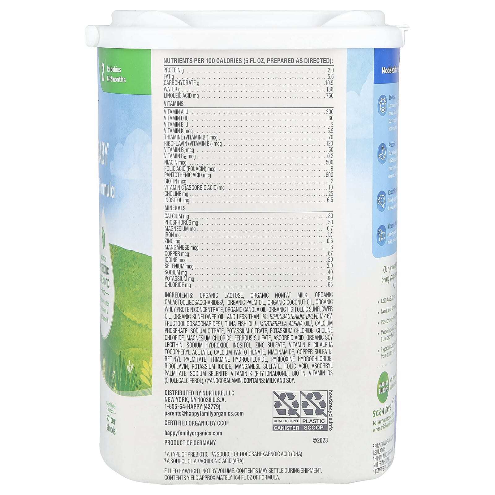 Органическая лактоза, органическое обезжиренное молоко, органические галактоолигосахариды †, органическое пальмовое масло, органическое кокосовое масло, концентрат органического сывороточного протеина, органическое рапсовое масло, органическое высокоолеиновое подсолнечное масло, органическое подсолнечное масло, и менее 1%: бифидобактерии бреве м-16в, фруктоолигосахариды †, жир тунца ‡, масло мортиереллы альпийской§, фосфат кальция, цитрат натрия, цитрат калия, хлорид калия, холин хлорид, хлорид магния, сульфат железа, аскорбиновая кислота, органический лецитин из сои, гидроксид натрия, инозитол, сульфат цинка, витамин E (dl-альфа токоферилацетат), пантотенат кальция, никотинамид, сульфат меди, ретинилпальмитат, тиамина гидрохлорид, пиридоксина гидрохлорид, рибофлавин, йодид калия, сульфат марганца, фолиевая кислота, аскорбил пальмитат, селенит натрия, витамин К (фитонадион), биотин, витамин d3 (холекальциферол), цианокобаламин.