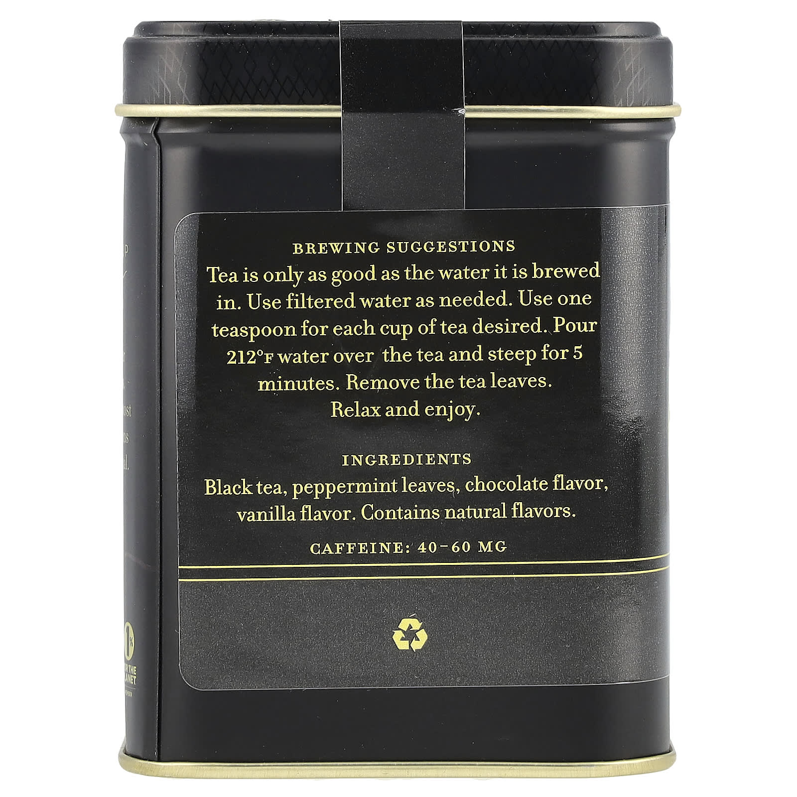 Китайские черные чаи тщательно смешиваются с натуральными и искусственными шоколадными вкусами и листьями мяты.