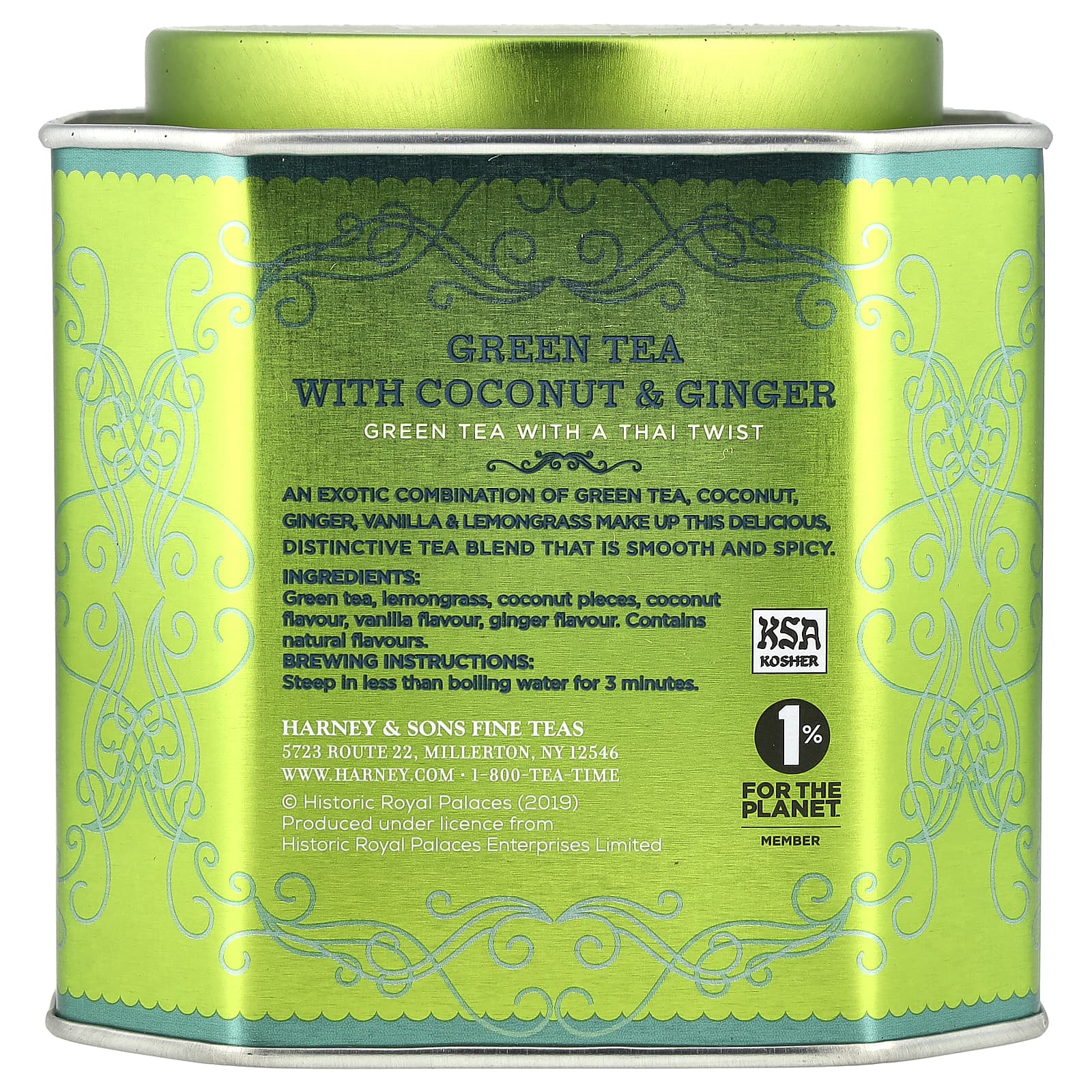 Harney & Sons, зеленый чай с кокосом, имбирем и ванилью, 30 пакетиков, 75 г (2,67 унции)