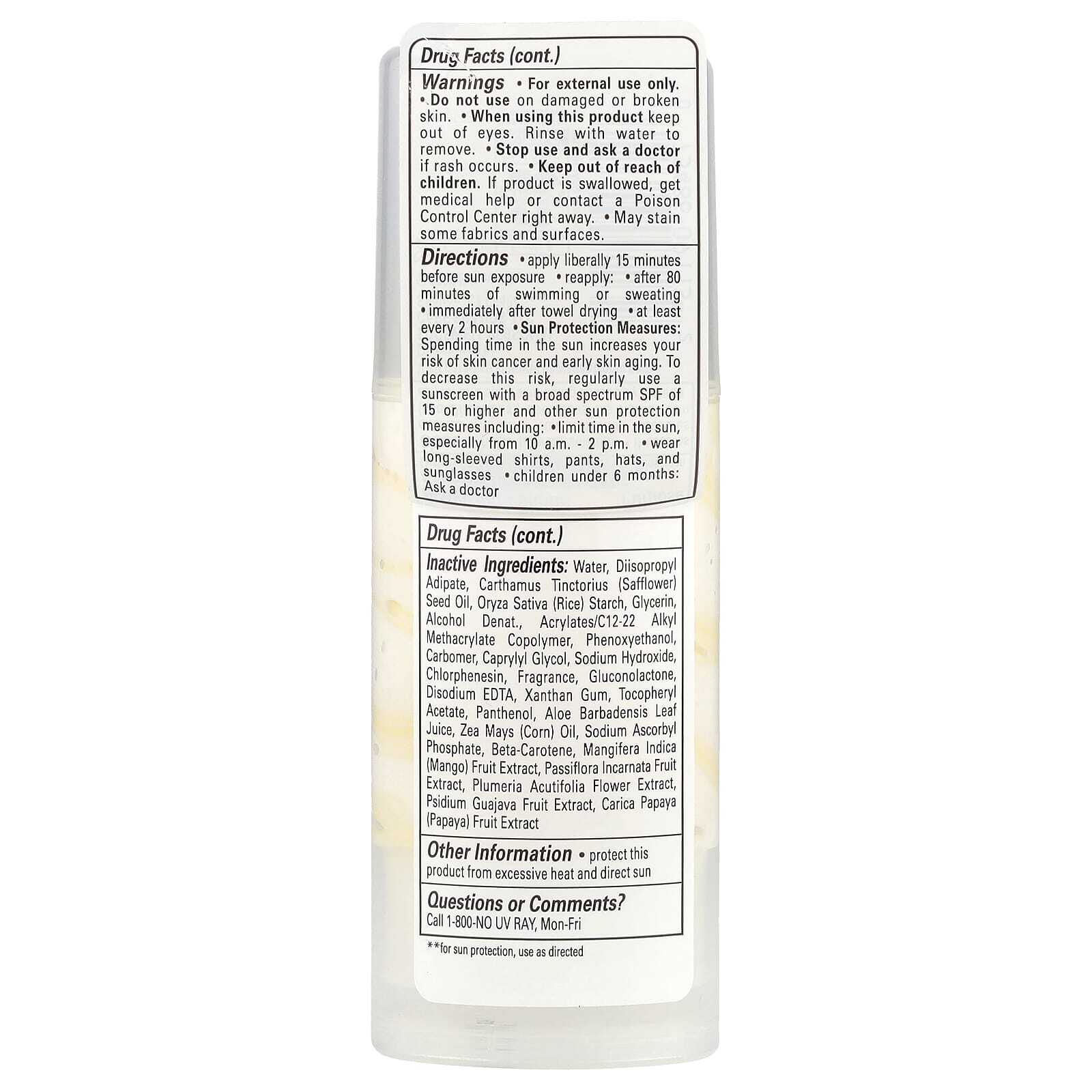 | Вспомогательные ингредиенты: Вода, диизопропиладипат, масло семян сафлора (Carthamus tinctorius), рисовый крахмал (Oryza sativa), глицерин, денатный спирт, сополимер акрилатов / c12-22-алкилметакрилата, феноксиэтанол, карбомер, каприлилгликоль, гидроксид натрия, хлорфенезин, ароматизатор , двунатриевая эдта, ксантановая камедь, токоферилацетат, пантенол, сок листьев алоэ вера, кукурузное масло (Zea mays), аскорбил фосфат натрия, бета-каротин, экстракт плодов манго (Mangifera indica), экстракт плодов пассифлоры (Passiflora incarnata), экстракт цветков плюмерии острой (Plumeria acutifolia), экстракт плодов гуаджавы psidium, экстракт плодов папайи (Carica papaya). | |